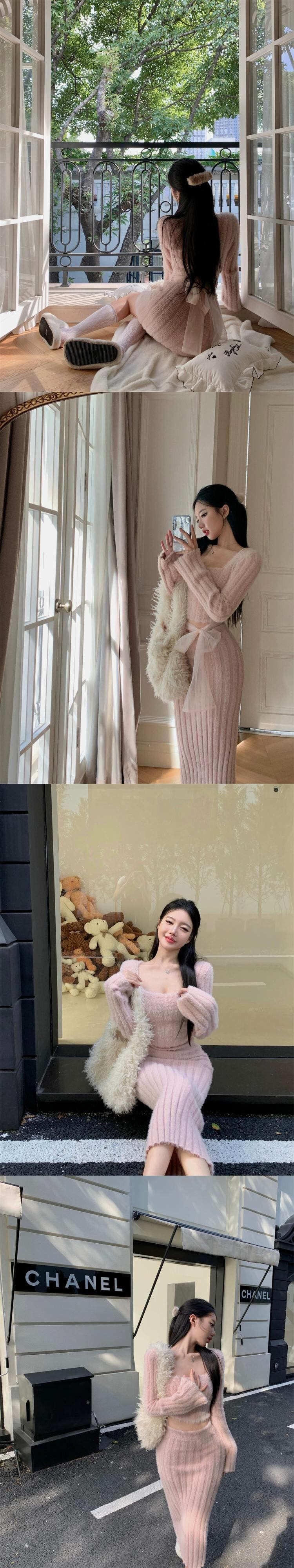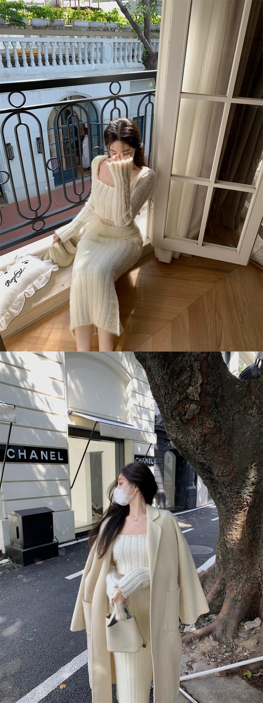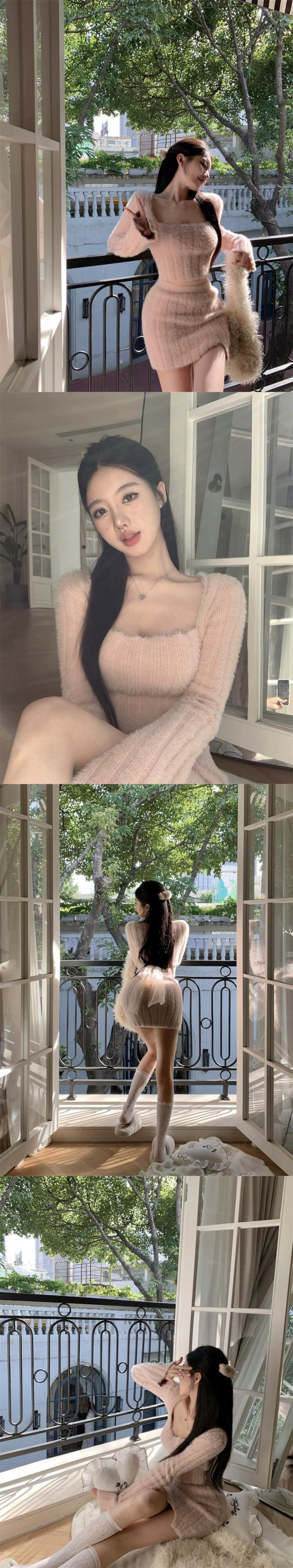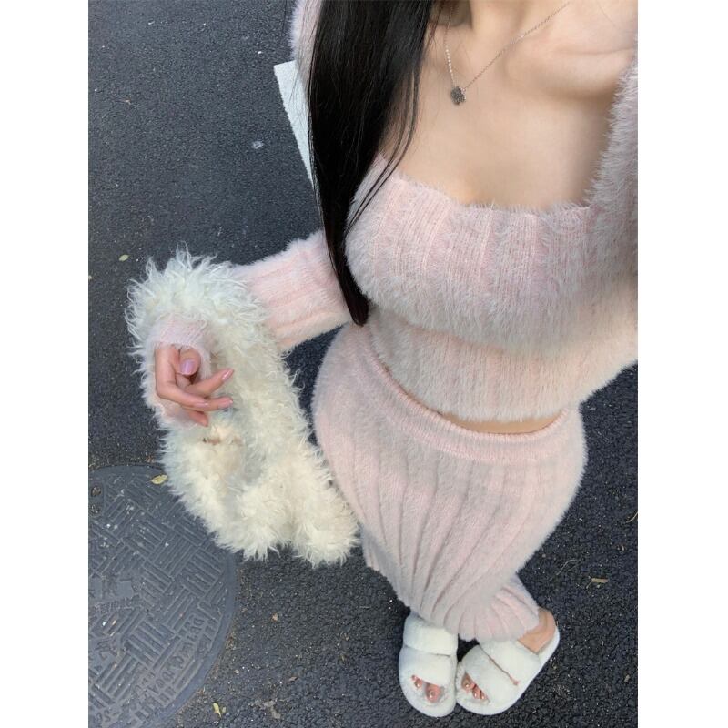 純粋な欲望ファッション女性の 2023 春の新イミテーションミンクベルベットセーターハイウエストバッグヒップスカート 2 点セット ハイウェスト スプリング 春物 0921950592048027