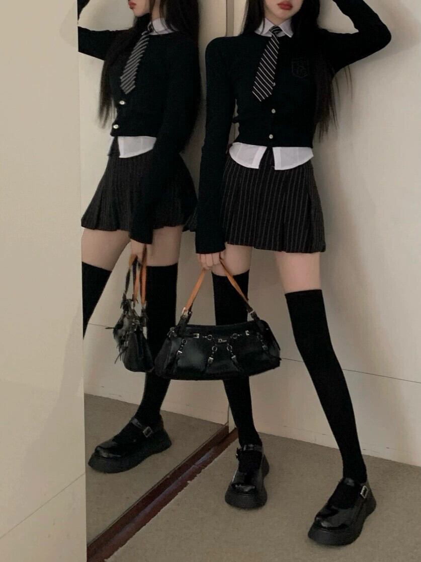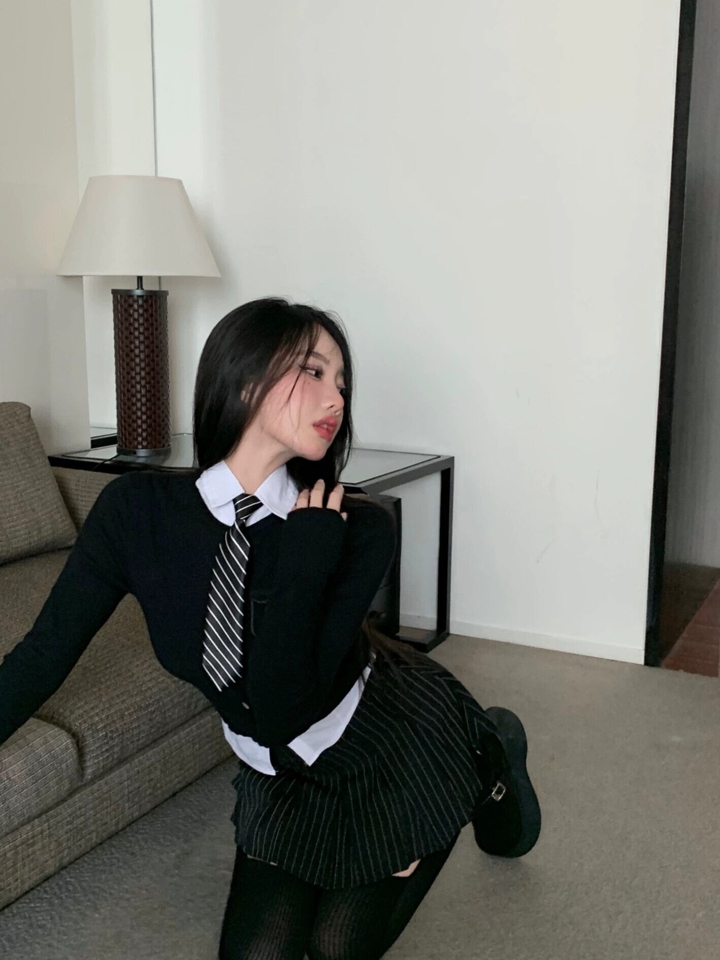 アメリカンレトロなデザインセンスの黒のショートニットセーターレディース2023春の新作スリムフィットと薄手のカーディガントップ潮 ブラック スプリング 春物 0921998724181352