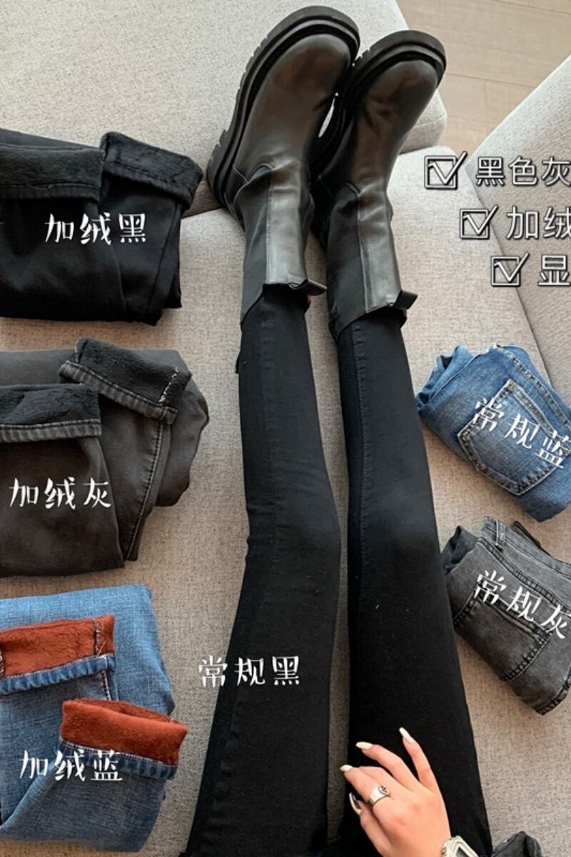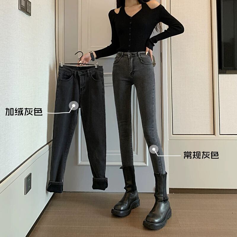 豪華な厚みのあるハイウエストジーンズ女性の春と秋オールマッチ小足スリムペンシルパンツクロップドパンツ スプリング 春物 オータム 秋物 0921942190107328