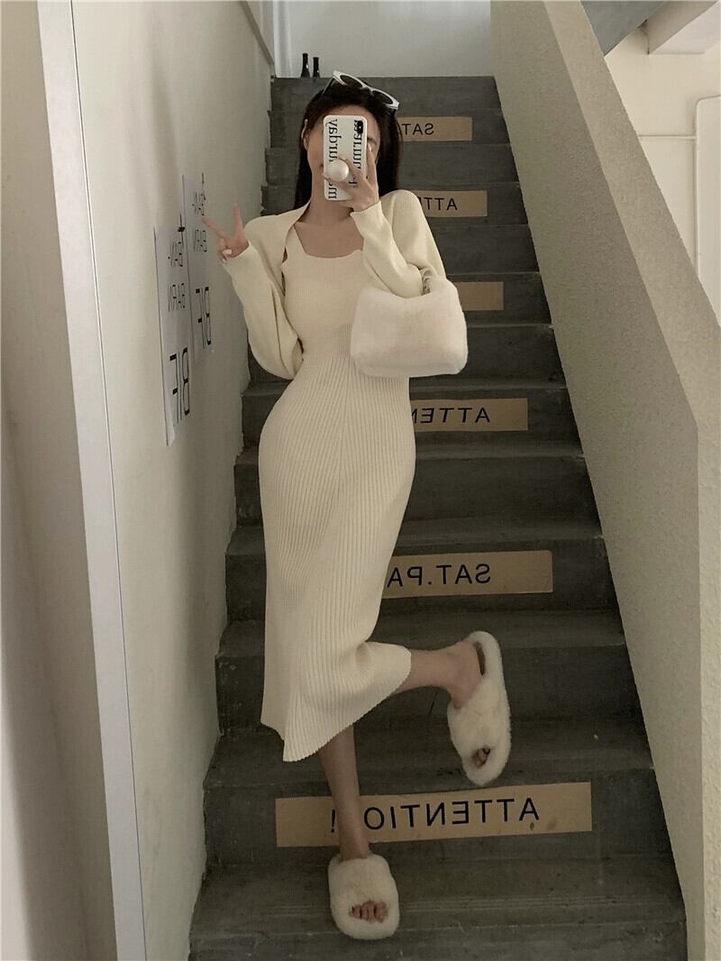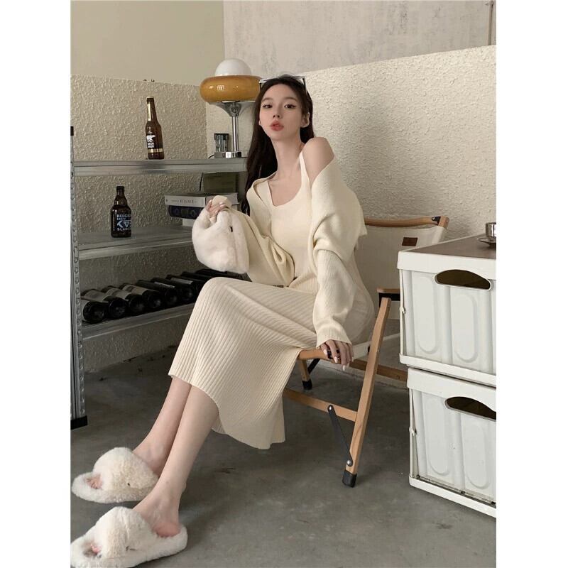 バージョンデザインセンス薄いベストニットドレス女性春 2023 新しいオールマッチミッドレングススカートイン スプリング 春物 0921957368905292
