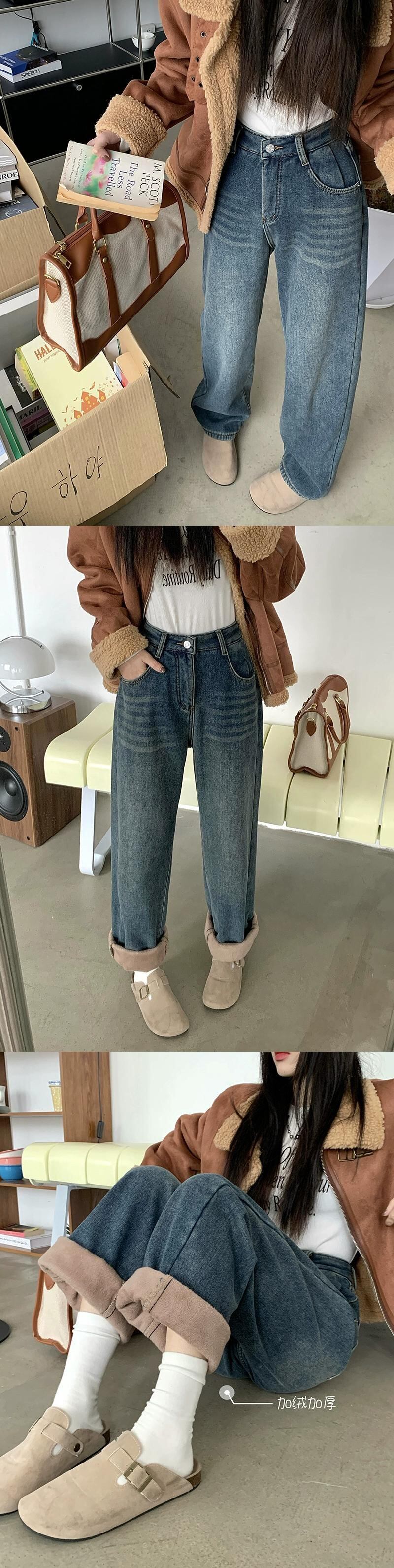バージョンのレトロなオールマッチハイウエストジーンズ女性の 2023 年冬新しいベルベット肥厚ルーズストレートワイドレッグパンツ ウィンター 冬物 0921938368613271