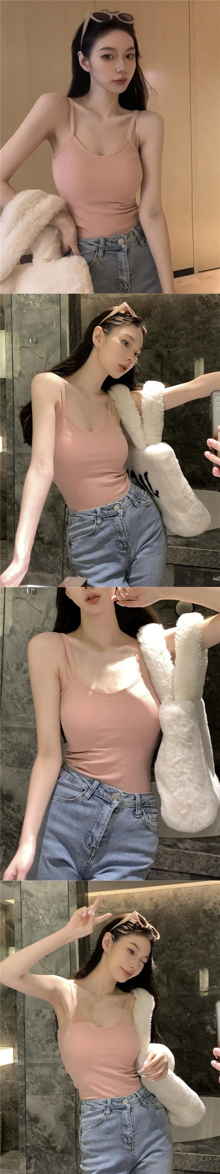 バージョンプラスベルベット厚みオールマッチ V ネック小さなスリング女性の春と秋 2023 新しいショートスタイルスリムインナーボトミングトップ スプリング 春物 オータム 秋物 Vネック 092192148138976