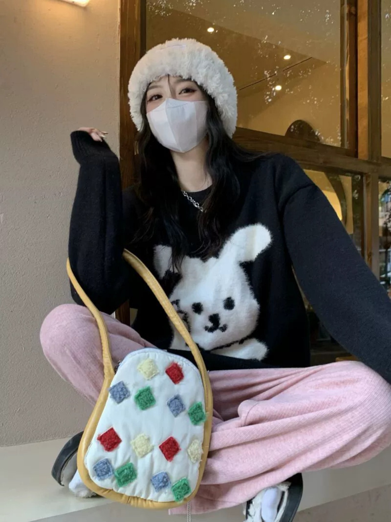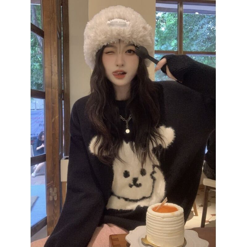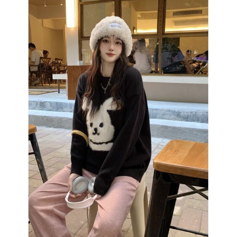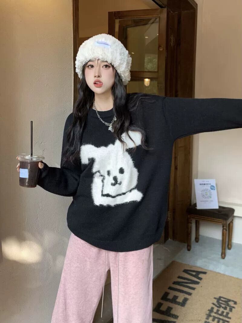 スタイルかわいい子犬ルーズプルオーバーセーター女性の春 2023 新しいオールマッチデザインセンスニットトップ潮 大人ガーリー スウィート キュート カジュアル スプリング 春物 0921991382732414