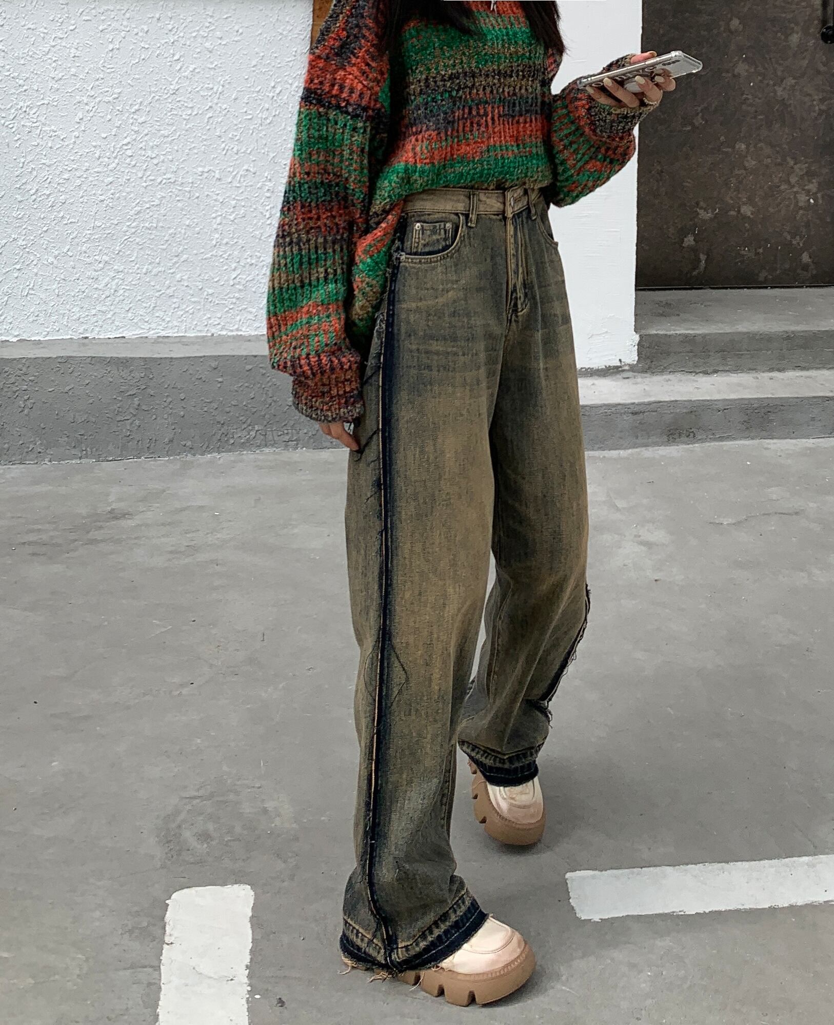 アメリカンスタイルのオールドウォッシュハイウエストジーンズの女性の夏2023新しいレトロハイストリートルーズスリムワイドレッグパンツ ハイウェスト サマー 夏物 0921997430456459