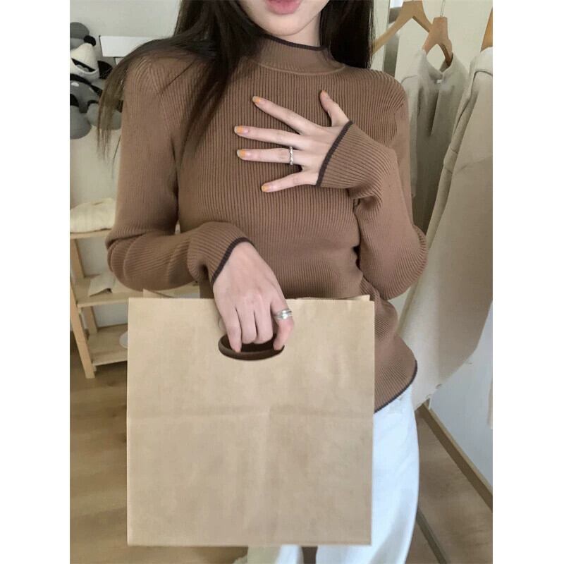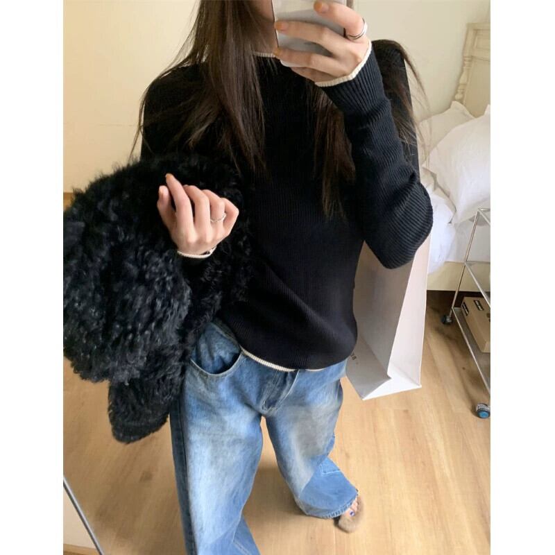 気質オールマッチカラーコントラスト長袖プルオーバーセーターレディース 2023 春秋の新デザインセンススリムスリムセーター潮 ロング スプリング 春物 オータム 秋物 0921957717298967