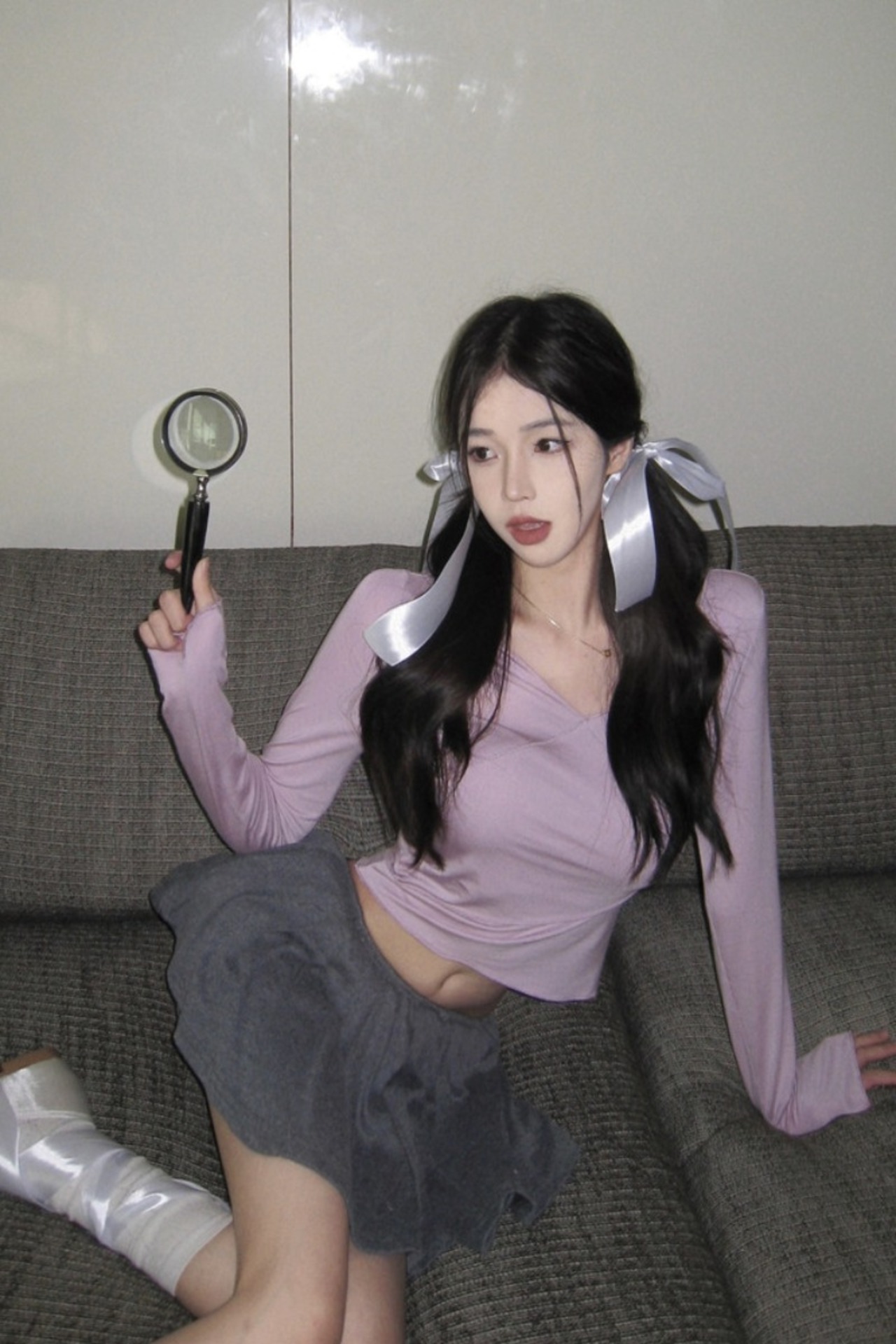 純粋な欲望スタイル V ネック長袖 T シャツレディース 2023 春の新しいデザインセンスニッチスリムフィットタイトショートトップ潮 ロング スプリング 春物 Vネック Tシャツ 0921958306023907