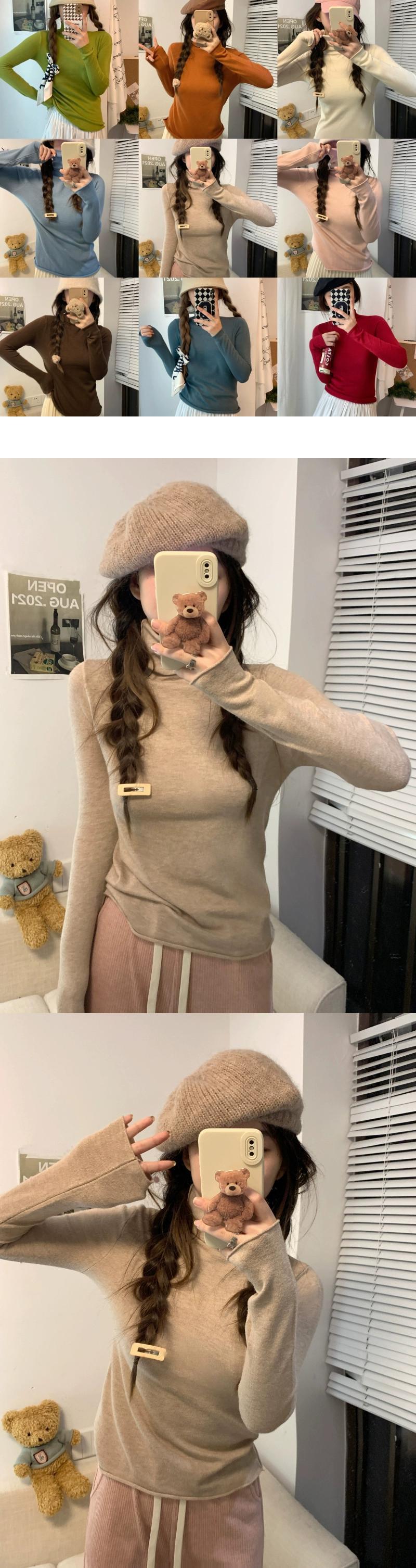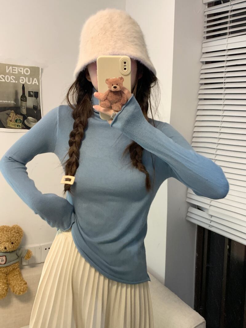 -ネックニットボトムシャツレディース2023春新作ショートセクションスイートスリムスリム長袖インナートップ ロング 大人ガーリー スウィート キュート カジュアル スプリング 春物 0921939034109485