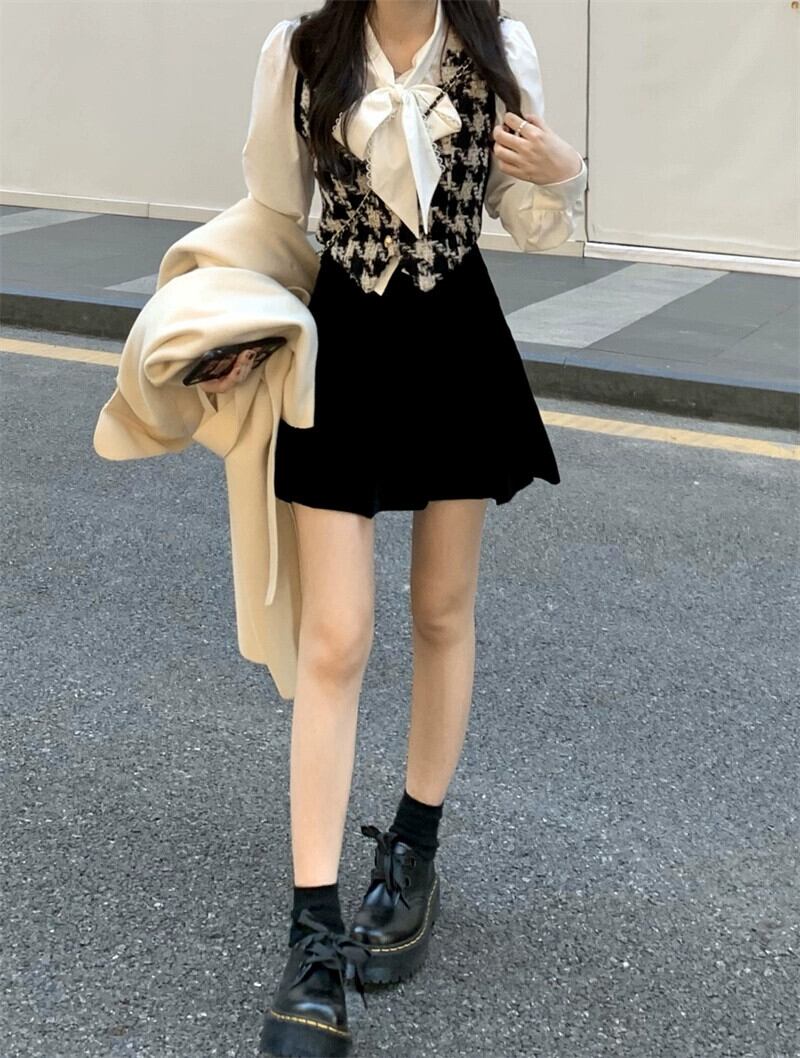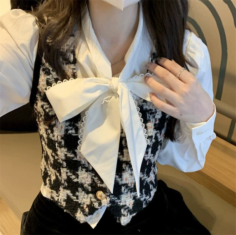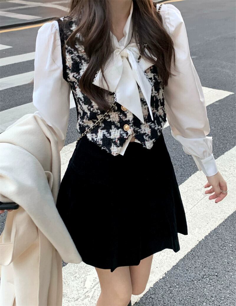 Xiaoxiang 気質スーツ女性の夏の 2023 新しい弓シャツベストベルベットスカートスリーピーススーツ リボン サマー 夏物 0921972767391797