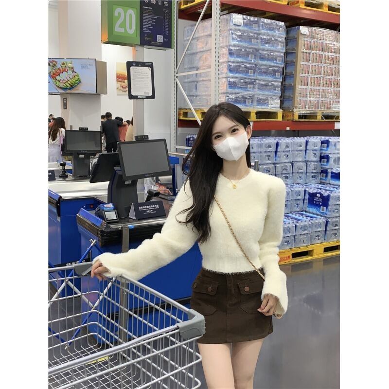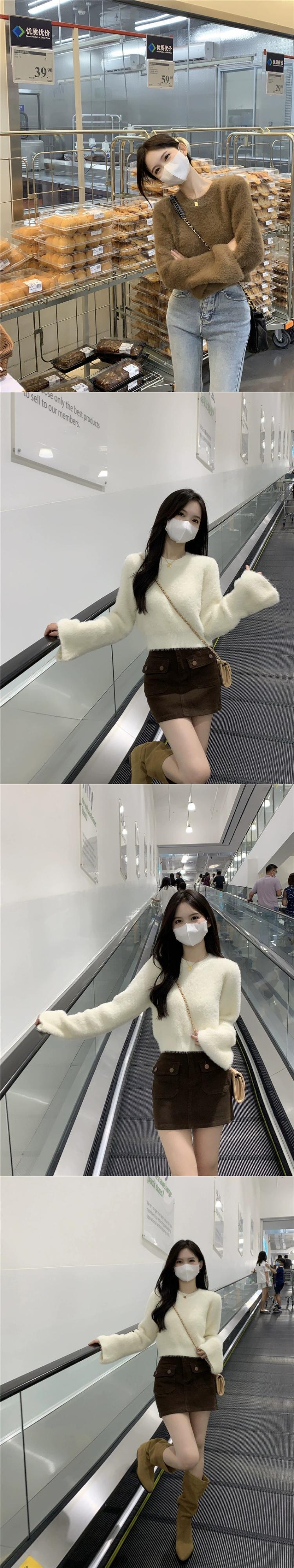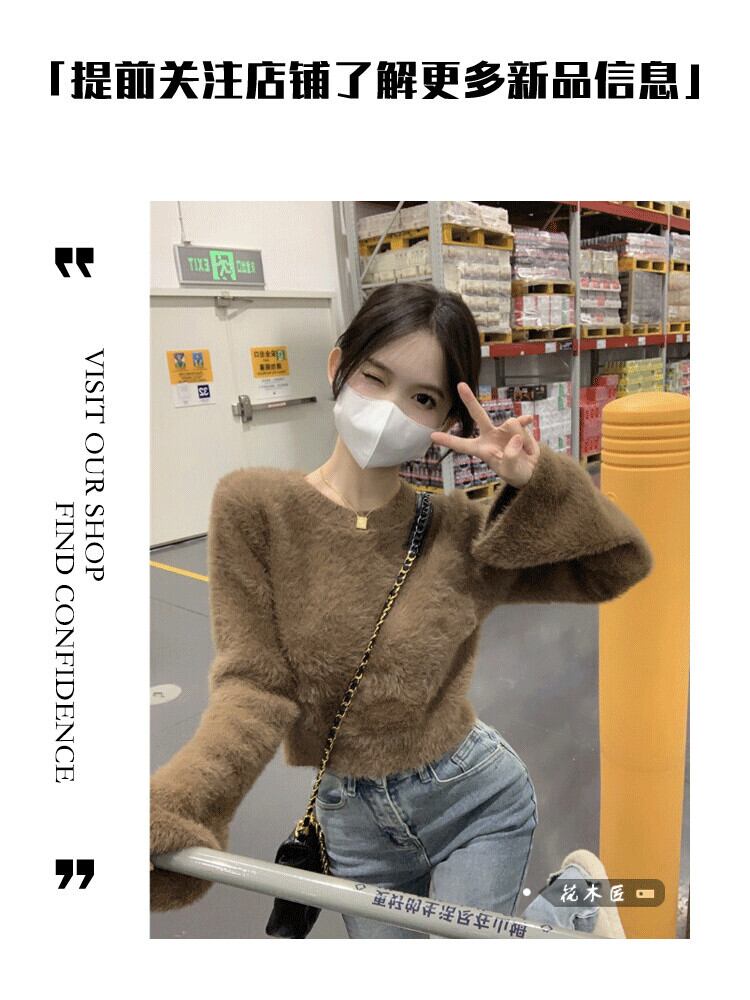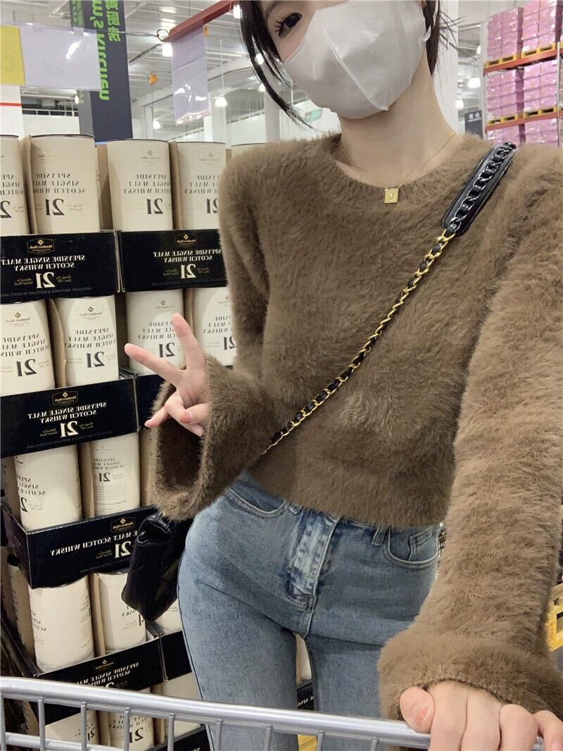 優しい風模造モヘアショートプルオーバーセーター女性の春と秋 2023 新しいオールマッチルーズニットセータートップ潮 スプリング 春物 オータム 秋物 0921911046943501
