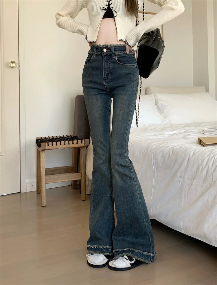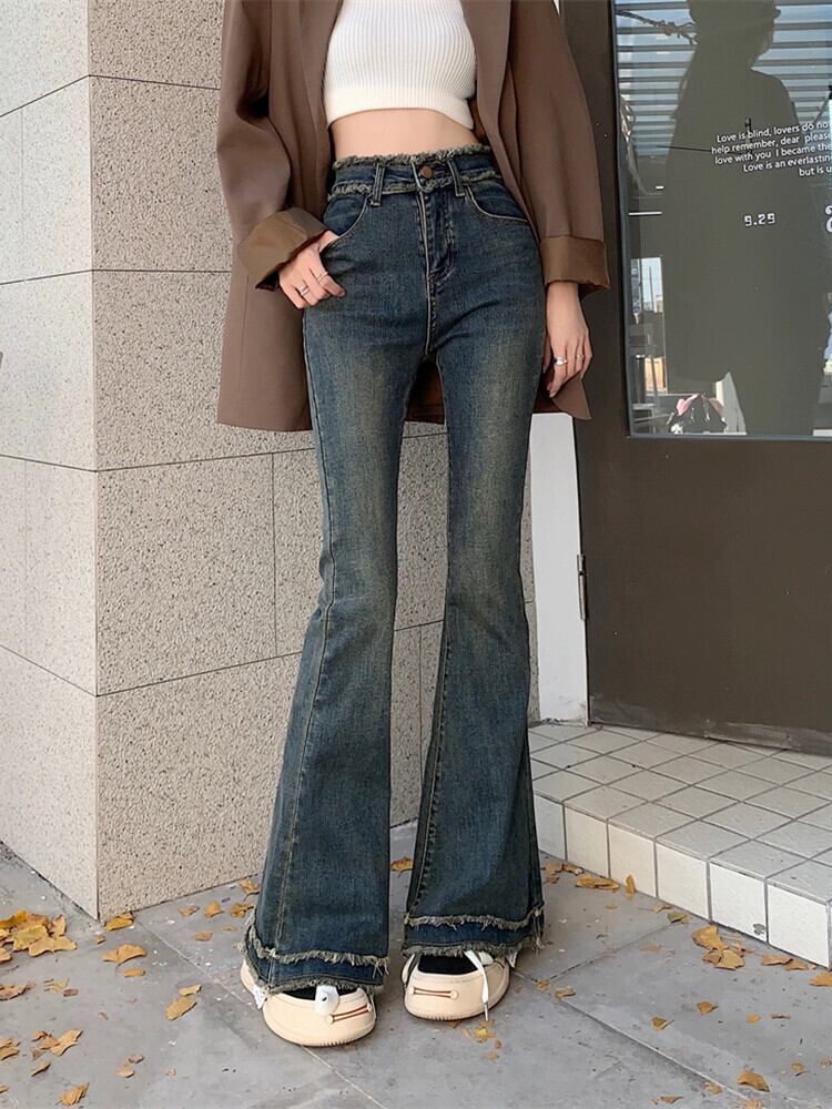 レトロハイストリートベイビーマイクロ発売ジーンズレディース2023年夏新デザインセンスローエッジハイウエストスリムモップパンツ ハイウェスト サマー 夏物 0921941916152866