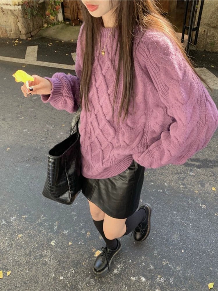 レトロ怠惰な風ツイストプルオーバーセーター女性の春 2023 新しいシックなオールマッチルーズ長袖ニットトップ ロング スプリング 春物 0921996137151239