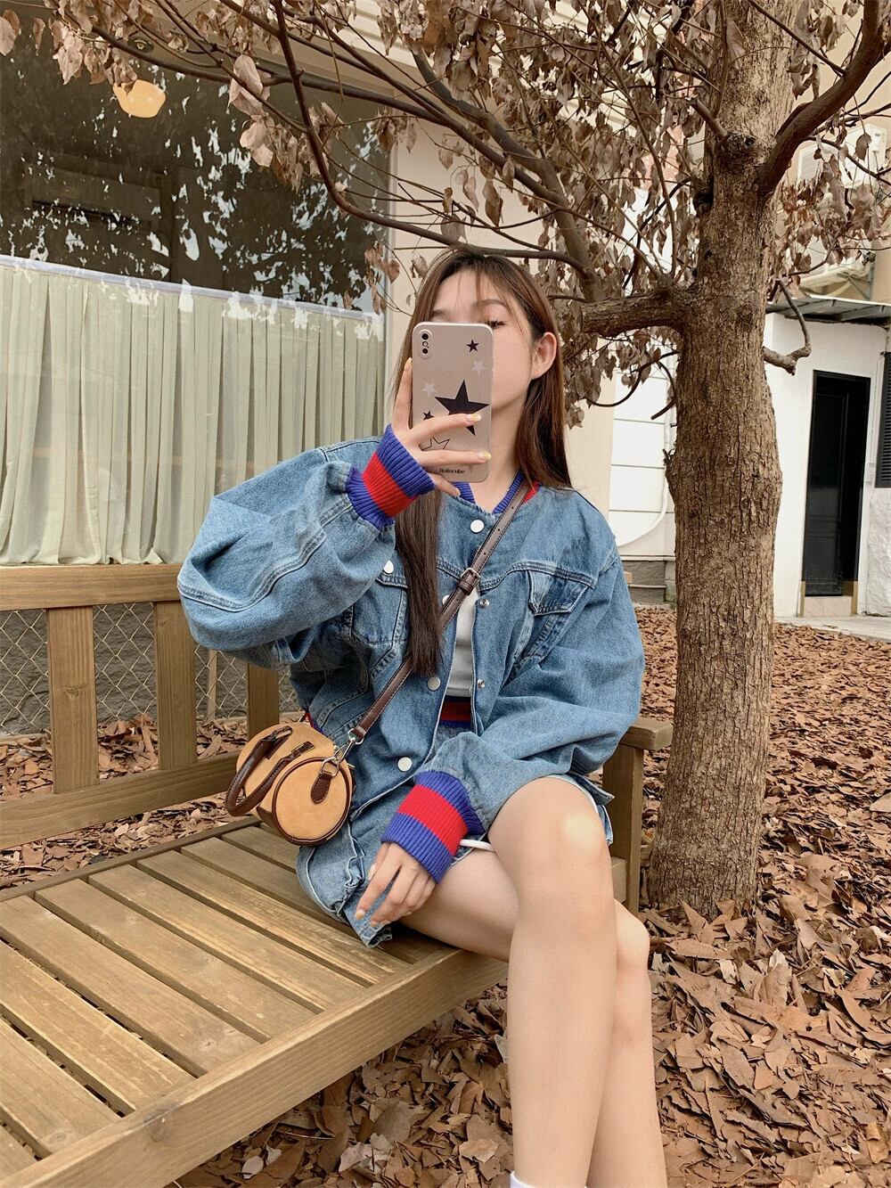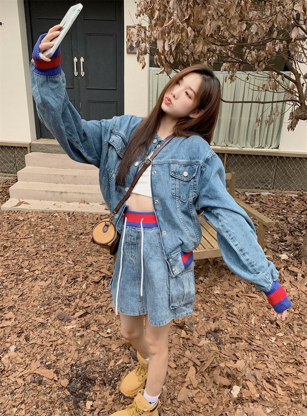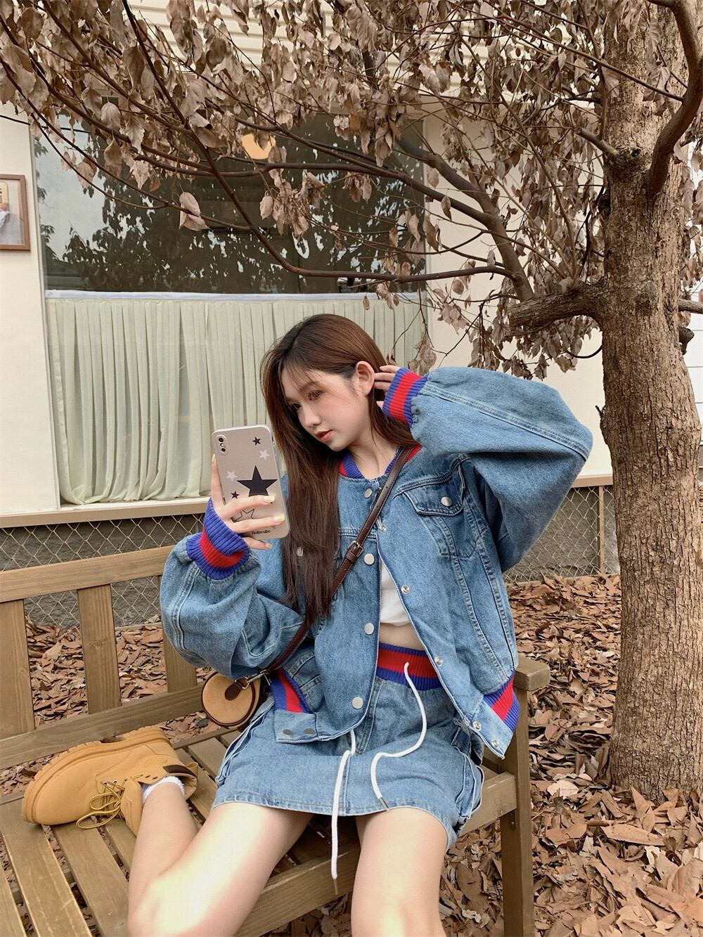 ファッションデニムスーツ女性の夏の 2023 新しいショート長袖ジャケットハイウエストスカート 2 点セット ハイウェスト ロング サマー 夏物 0921949366090789