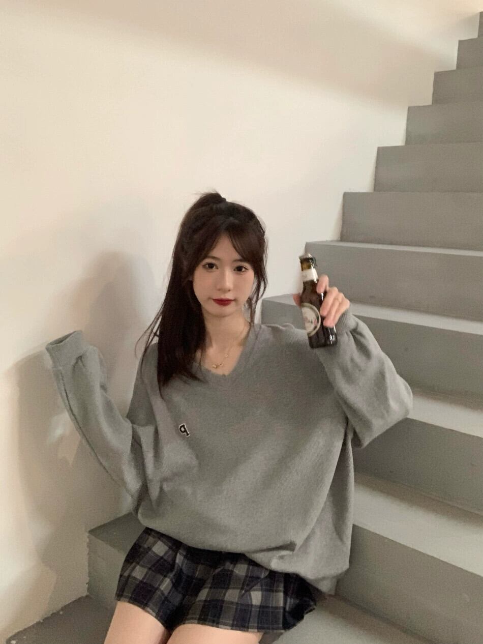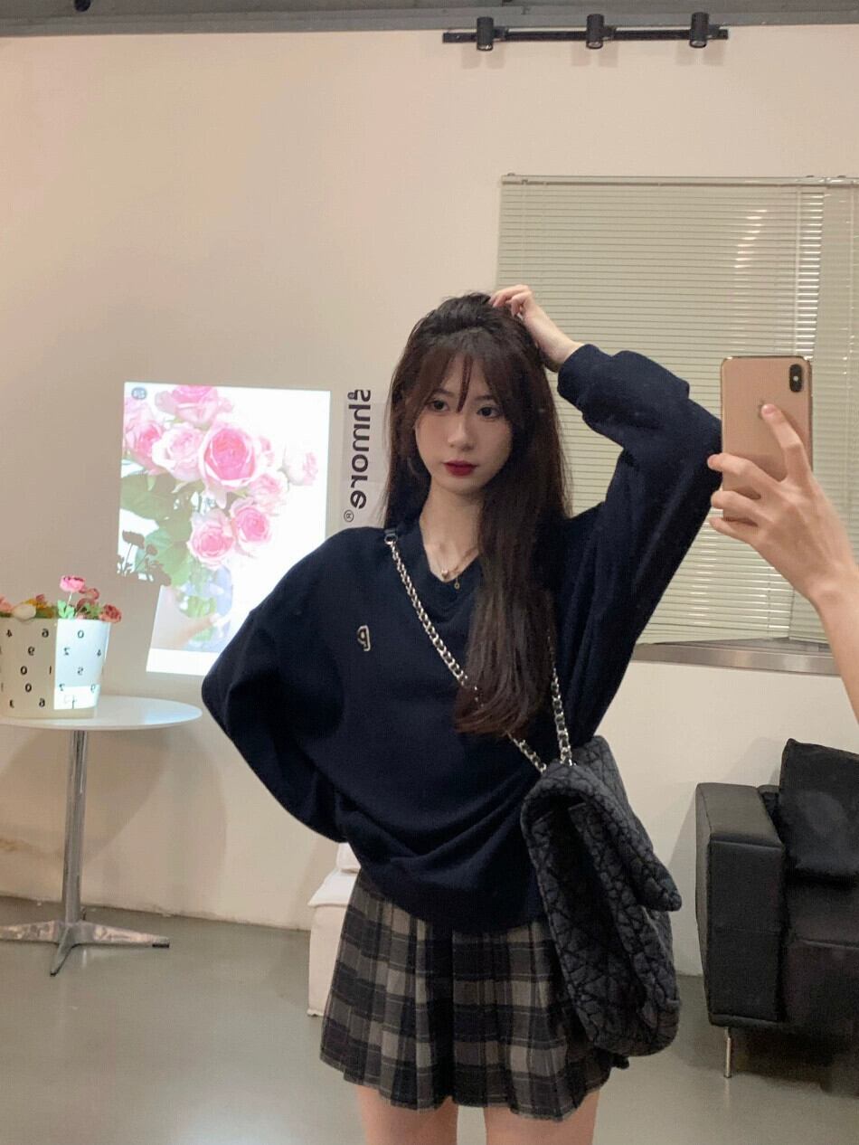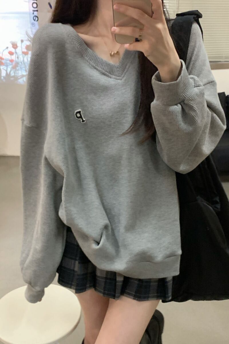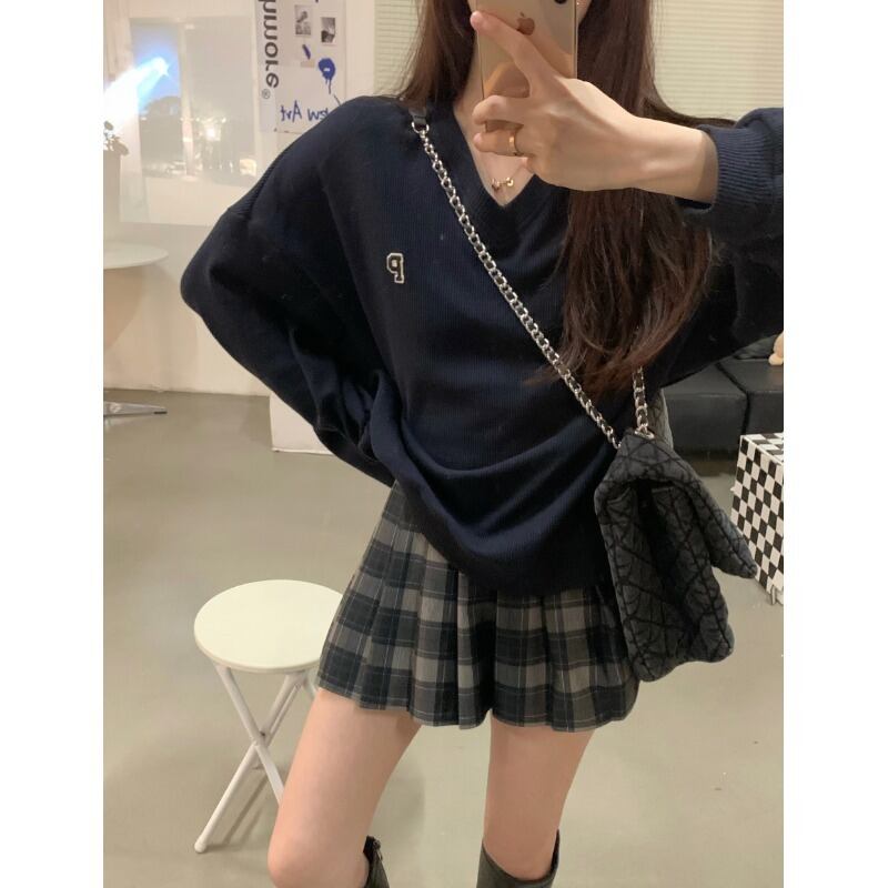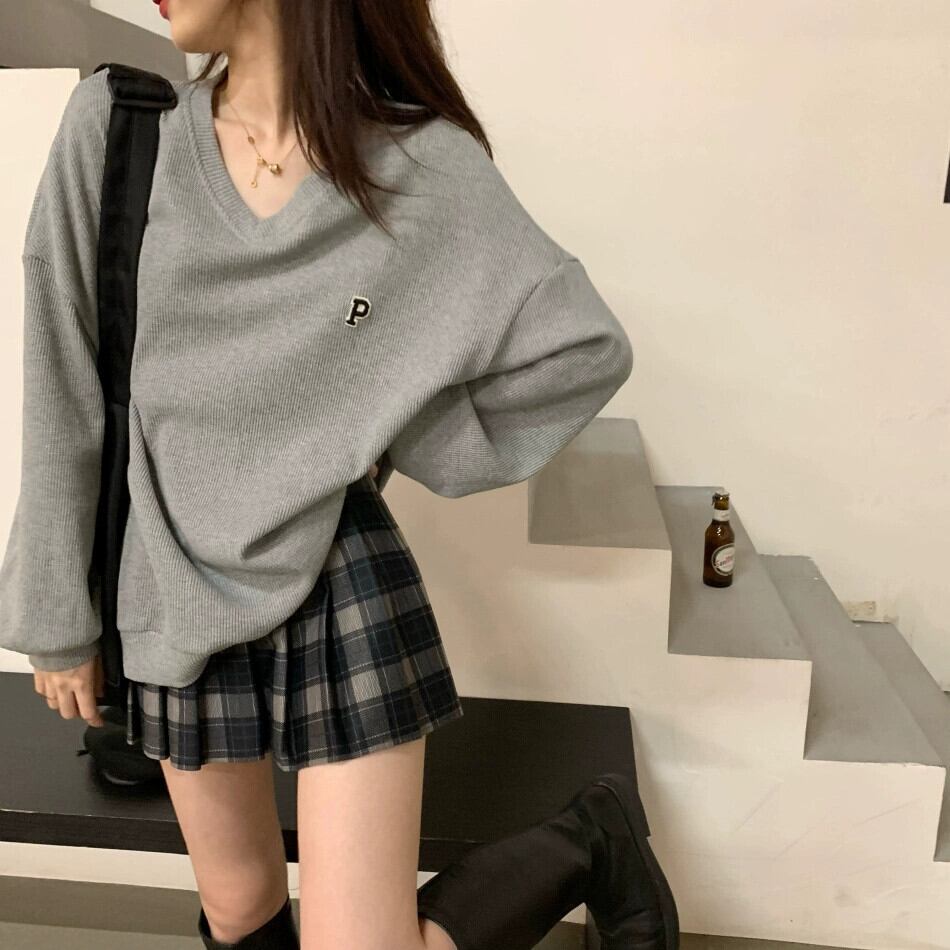 スタイルルーズ V ネックプルオーバー長袖セーター女性の春 2023 新年齢削減オールマッチ怠惰なグレートップ ロング スプリング 春物 Vネック 0921990933907546