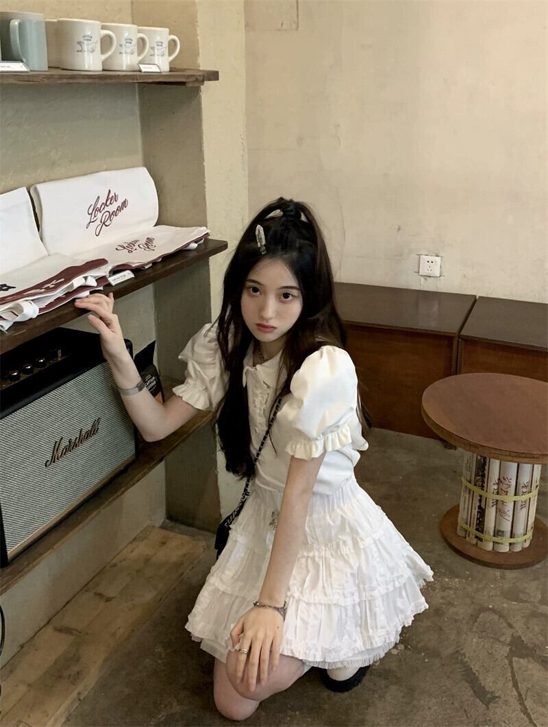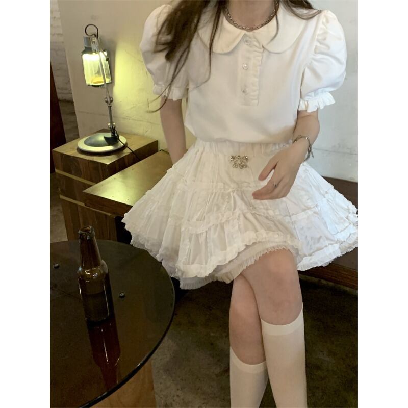 甘いスーツ女性の夏 2023 新しいオールマッチ人形襟トップハイウエストハーフレングスのチュチュスカート 2 点セット ハイウェスト 大人ガーリー スウィート キュート カジュアル サマー 夏物 パニエ ペチコート 0921975184211915