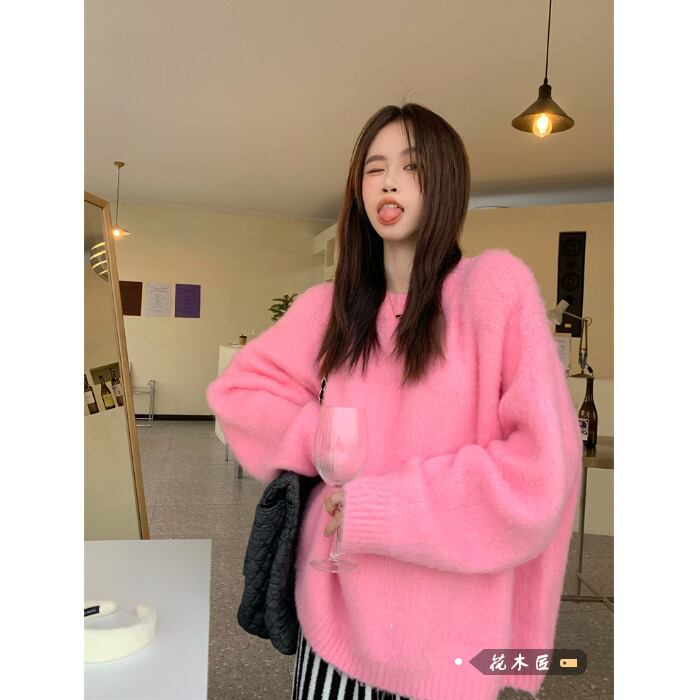 優しい風ピンクソフトワックスプルオーバーセーター女性の春 2023 新しい怠惰なオールマッチルーズニットトップイン スプリング 春物 0921921623803439