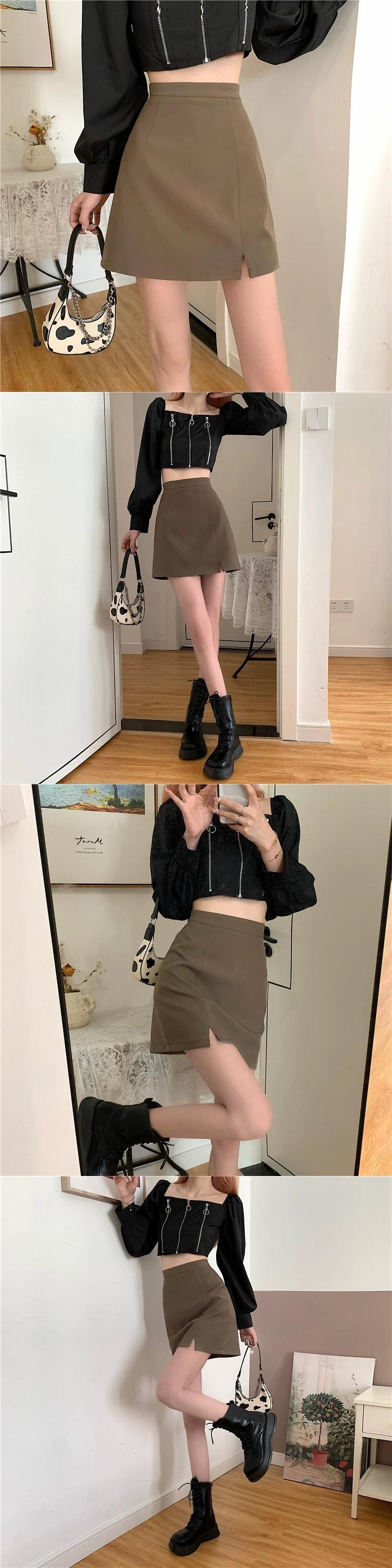 シックな西洋風ハイウエストスカートの女性の2023年夏新作香港風レトロスカートは細くて気質のスリットスカートに見えます サマー 夏物 0921992377619793
