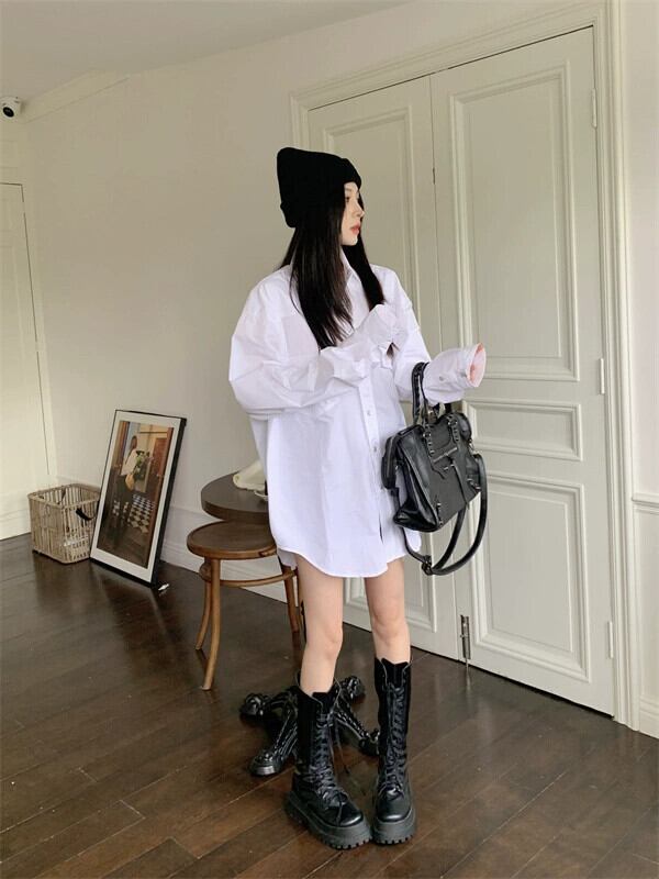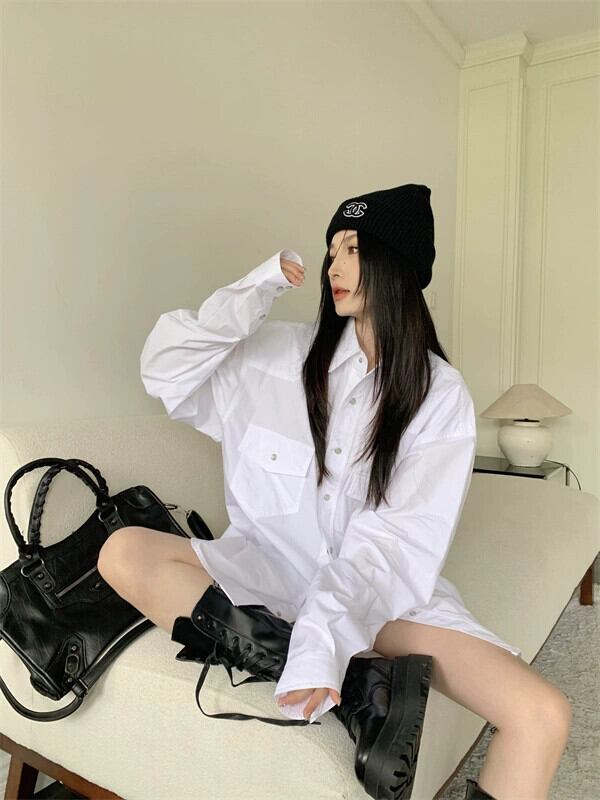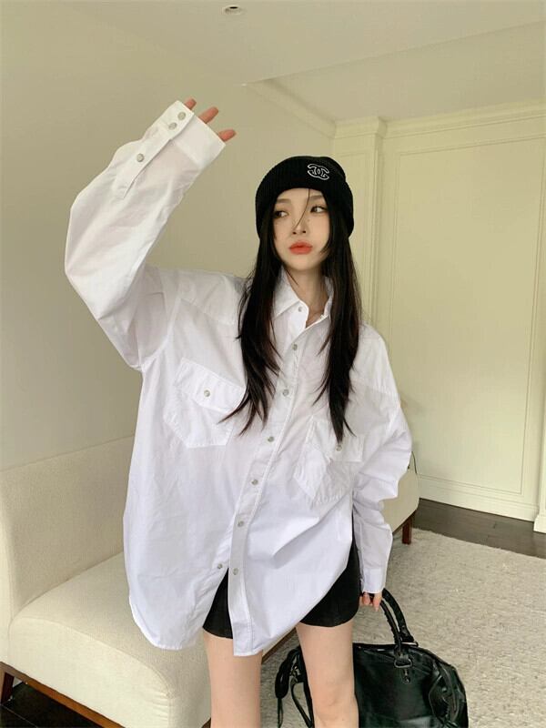 スタイルカジュアル BF スタイル白シャツ女性の夏の 2023 新しいミッドレングス緩い怠惰なスタイルのファッションシャツ ホワイト サマー 夏物 0921948395815298