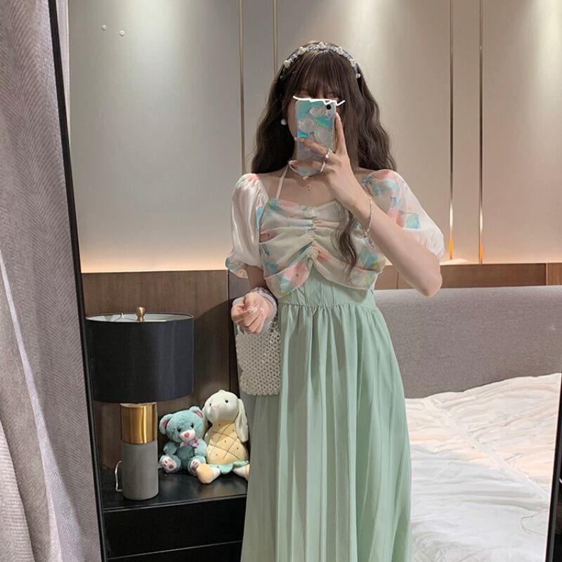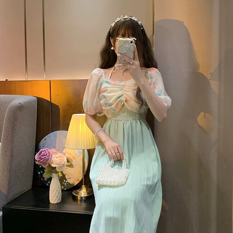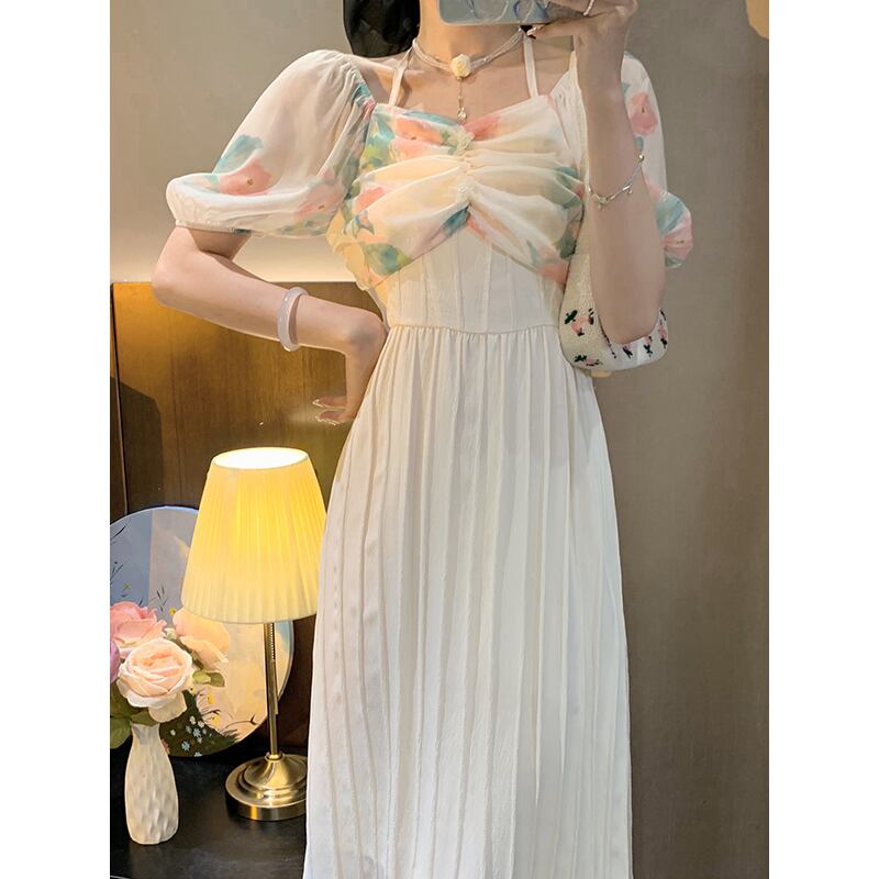 ニッチデザインセンススプライシングワンショルダー半袖ドレスレディース夏ウエスト痩身ミドル丈スカート サマー 夏物 0921986263552992