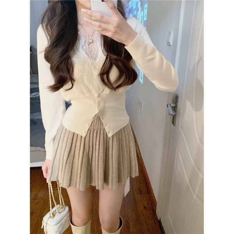 Xiaoxiangfeng 白優しいレースニットセーター女性の春と秋 2023 新しいオールマッチウエスト痩身カーディガントップ潮 ホワイト スプリング 春物 オータム 秋物 0921993697845536