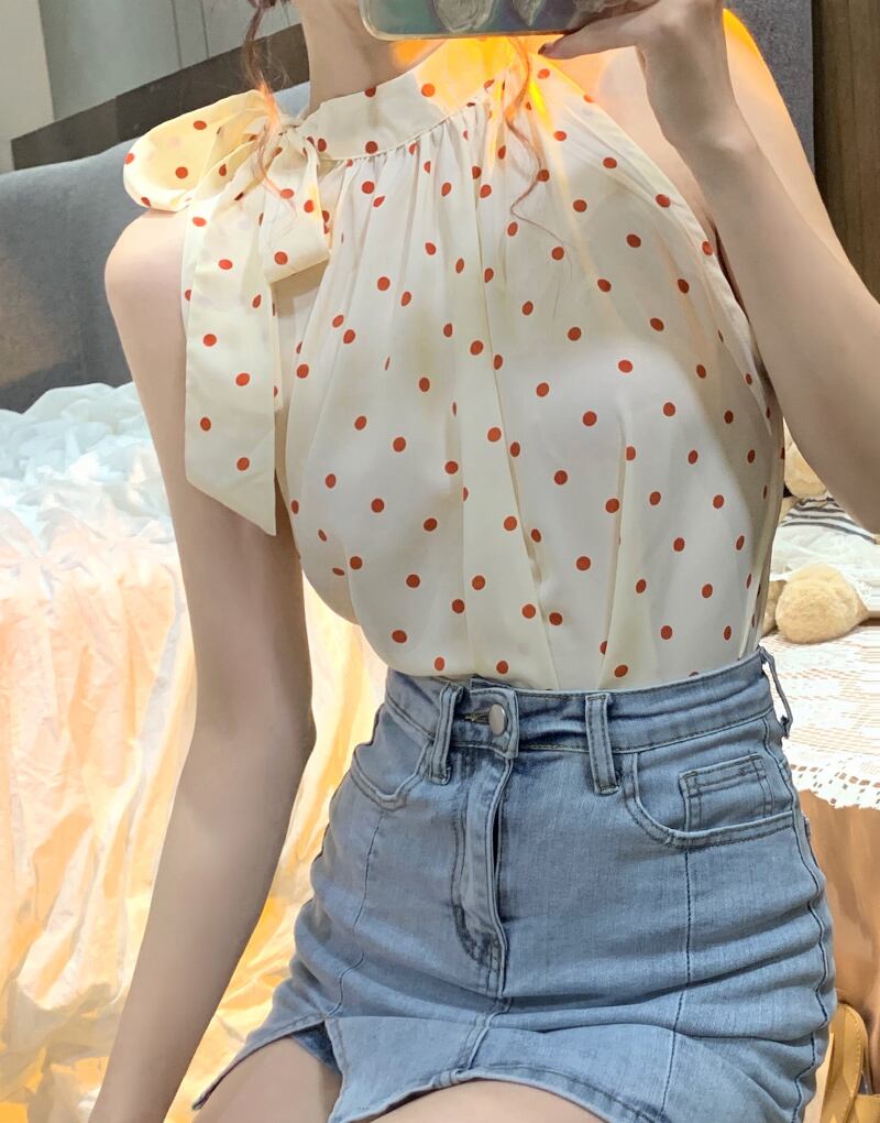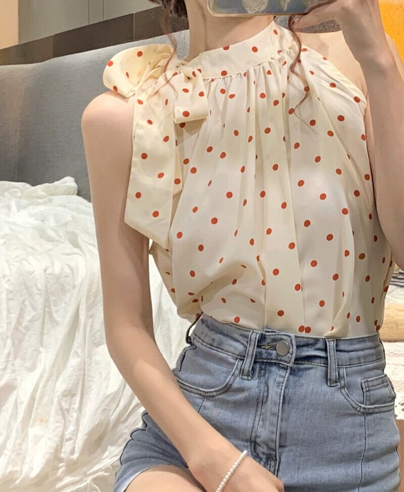 甘い気質プリントストラップボウベスト女性の 2023 夏の新しいルーズで薄いオールマッチノースリーブトップ リボン 大人ガーリー スウィート キュート カジュアル サマー 夏物 0921982625224019