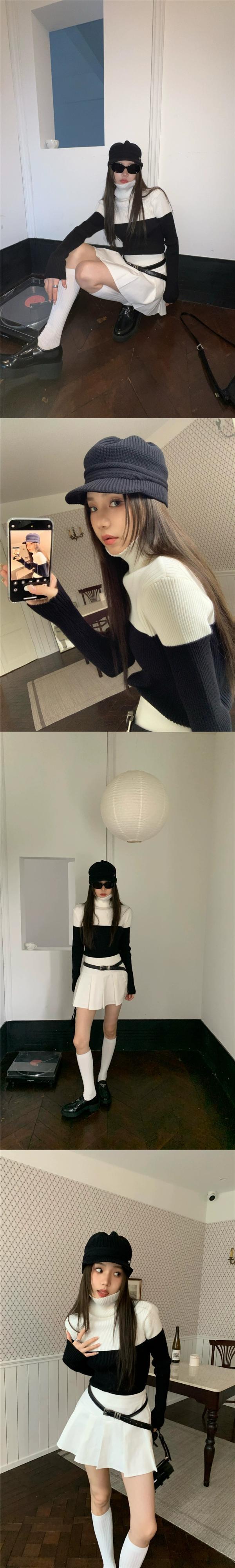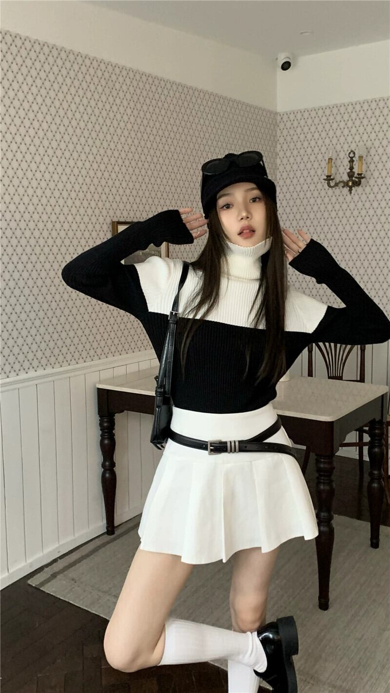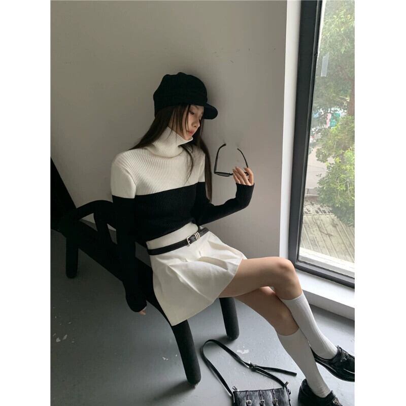 トレンディなオールマッチ対照的なカラーのタートルネックセーターレディース 2023 春の新しいデザインセンスニッチスリム痩身薄手ニットトップ スプリング 春物 0921967414148392