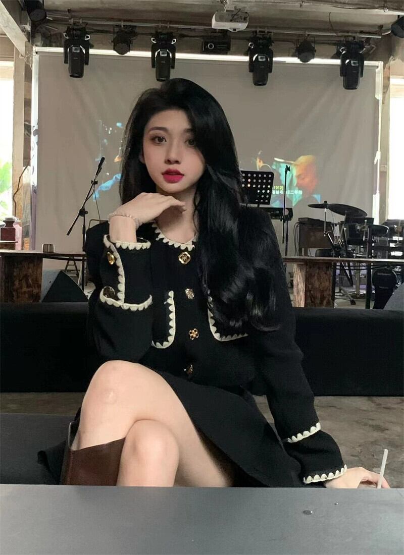 早春ハイエンド揚げストリート小さな香りスーツ女性 2023 新しいファッション黒のコートプリーツスカートツーピーストレンディ ブラック スプリング 春物 0921934470253343