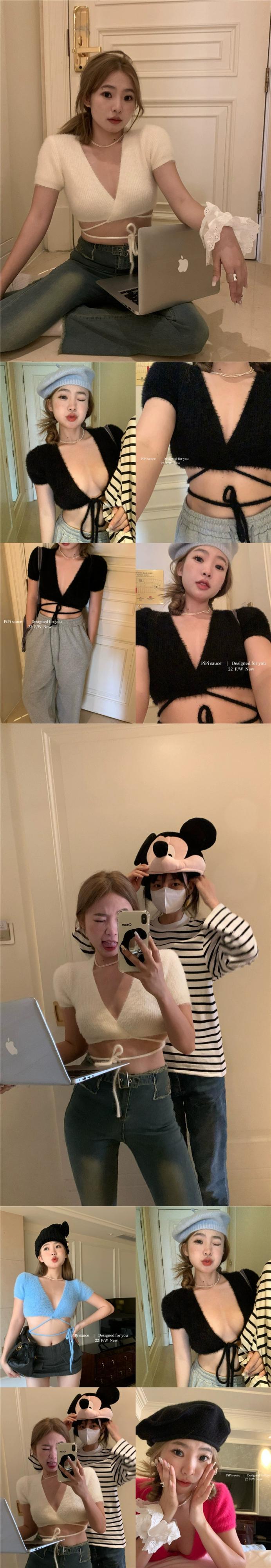 スパイスネクタイぬいぐるみニットボトリングシャツ女性の春シックな V ネックセクシーなハイウエストショートセクションセータートップ ハイウェスト スプリング 春物 Vネック 0921922048418203