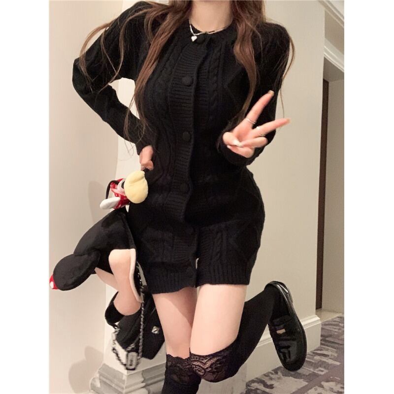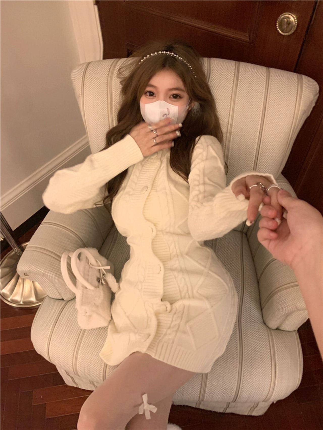 純粋な欲望スタイル無地ニットドレス女性の春と秋 2023 新しいウエスト痩身長袖セーターバッグヒップスカート ロング スプリング 春物 オータム 秋物 ソリッドカラー 0921931327069753