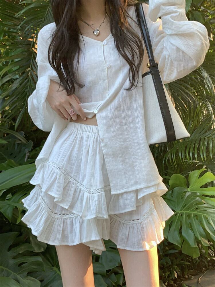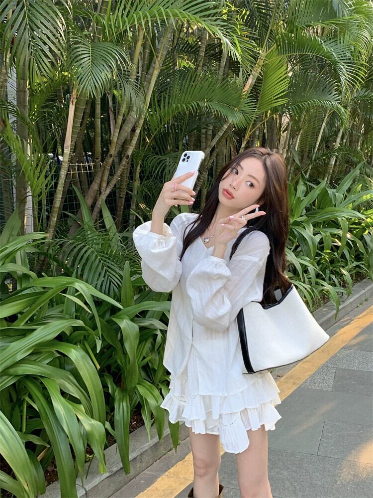 優しい風ファッションスーツ女性 2023 春の新作ルーズスリム長袖シャツハイウエストスカート 2 点セット ハイウェスト ロング スプリング 春物 0921974150881276