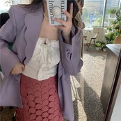 色:フォギーパープルジャケット,ホワイトサスペンダー,ソウルピンクのスカート