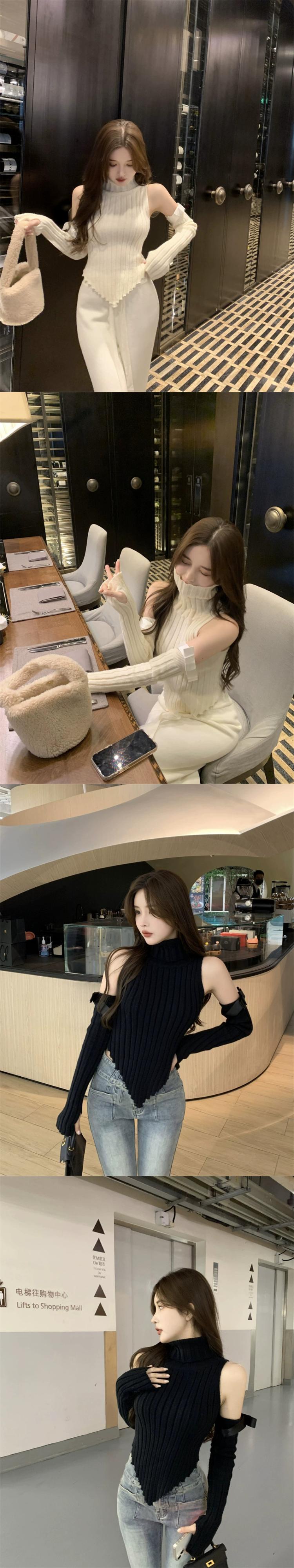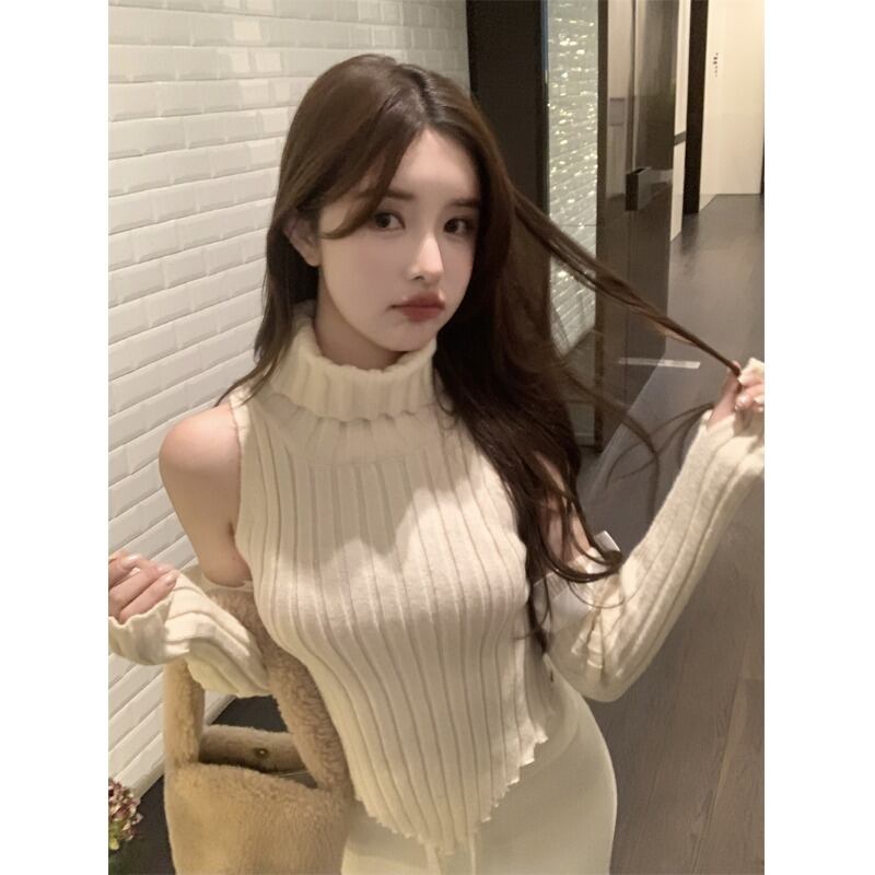 純粋な欲望白袖ハイネックニットセーターレディース 2023 春の新しいオールマッチショートセクションスリムスリムボトムトップ ホワイト スプリング 春物 0921924294022796