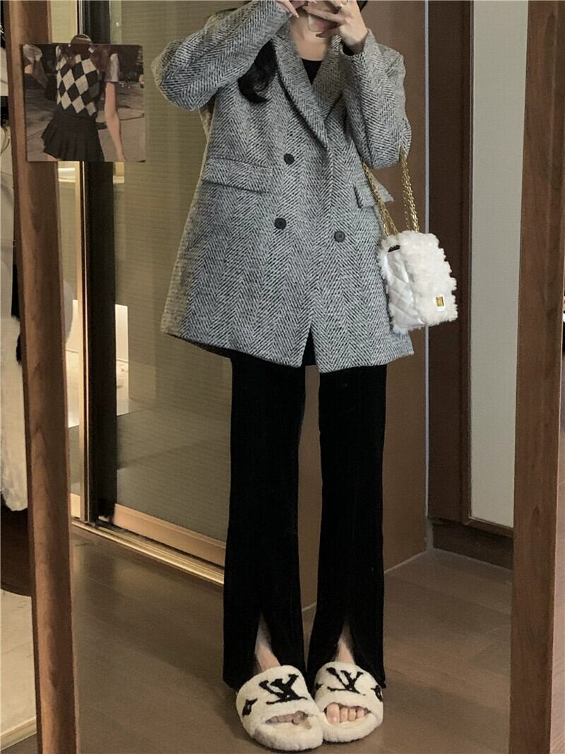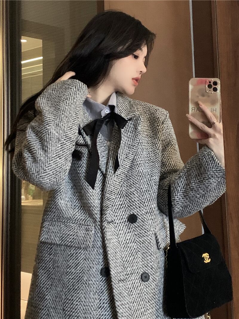 気質オールマッチウールキルティングジャケット女性の春と秋2023新しいミッドレングスファッショナブルなルーズ痩身スーツジャケット スプリング 春物 オータム 秋物 0921936565337513