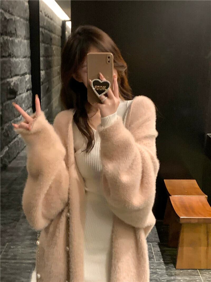 優しい風ソフトワックス状イミテーションミンクベルベットセータージャケット春 2023 スタイル怠惰な風ルーズニットカーディガン スプリング 春物 092198366303256