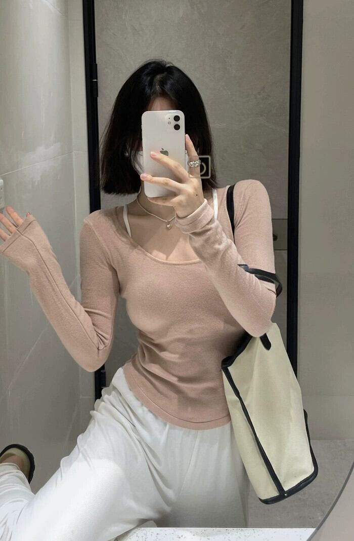 気質uネック純粋な欲望スタイルオールマッチニットセーター女性の春と秋の2023新しいスリムスリム長袖ボトリングシャツトップ ロング スプリング 春物 オータム 秋物 ピュア 0921974123490966
