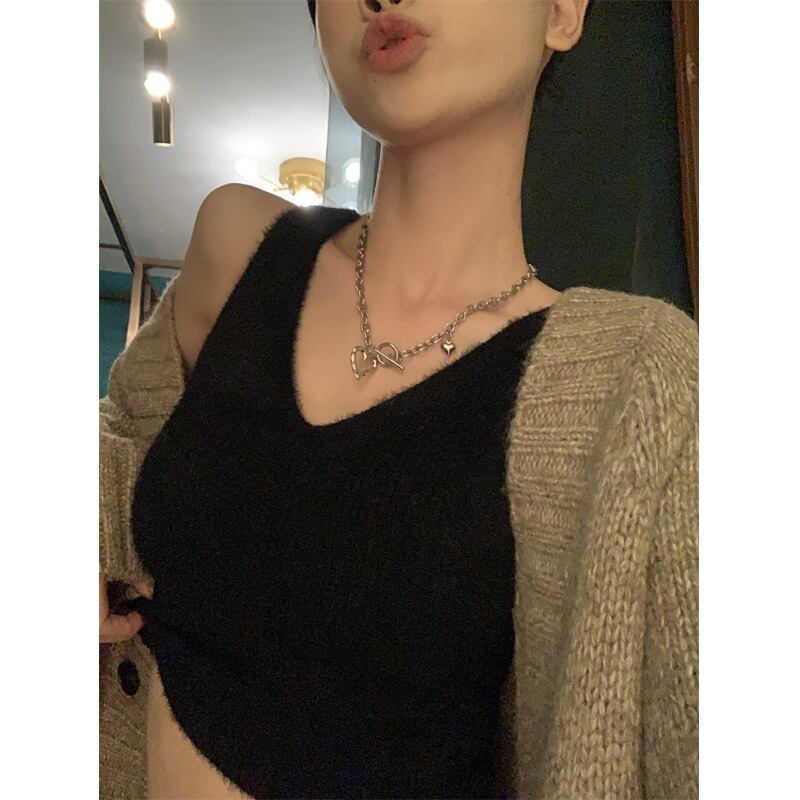 センス ショート プラッシュ V ネック キャミソール レディース 2023 春の新作オールマッチ痩身と薄底トップス スプリング 春物 Vネック 0921998436601264