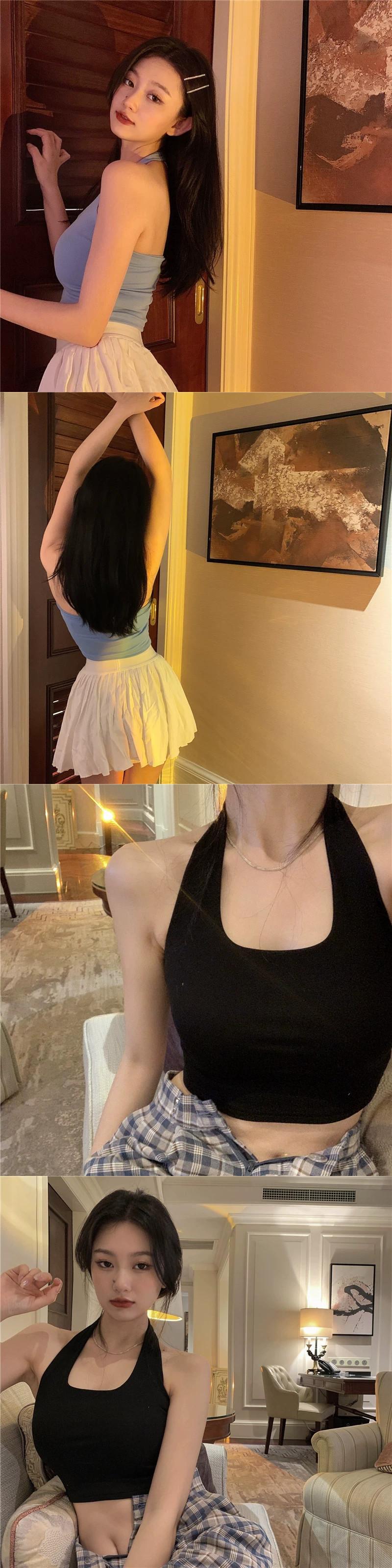 センス二層吊りネックキャミソール女性の 2023 夏の新しいショートセクション痩身と薄底ノースリーブトップ サマー 夏物 0921923626493073