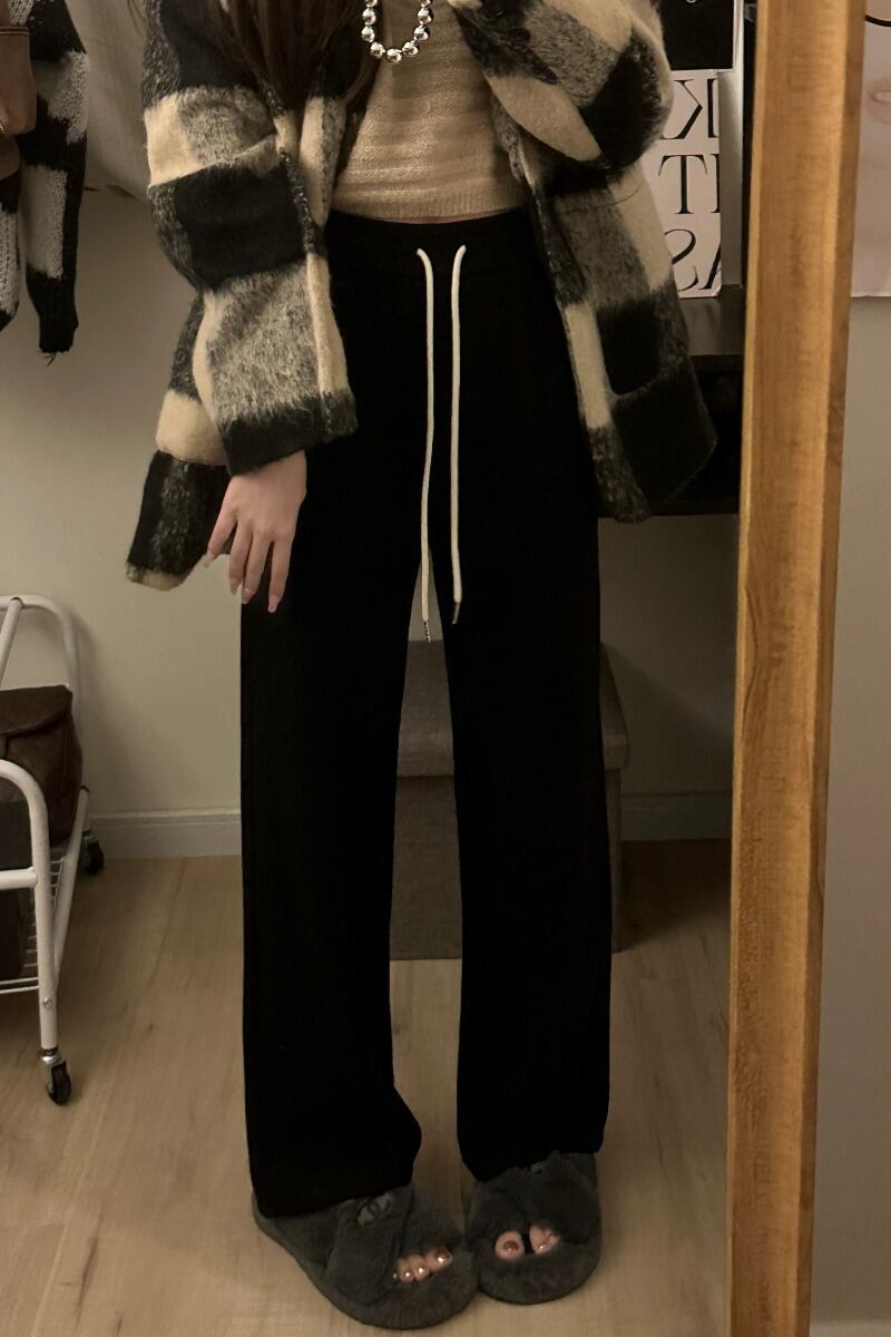 プラスベルベット肥厚ワイドレッグパンツレディースパンツ 2023 冬の新しいハイウエストルーズストレートレッグパンツカジュアルパンツ黒ズボン ブラック ウィンター 冬物 092198261821401