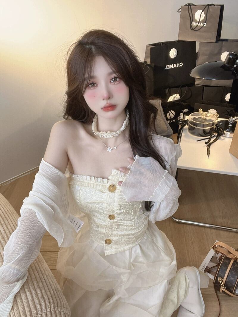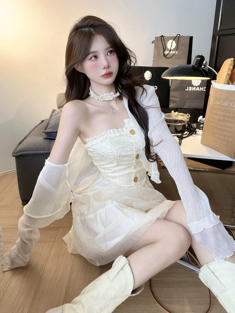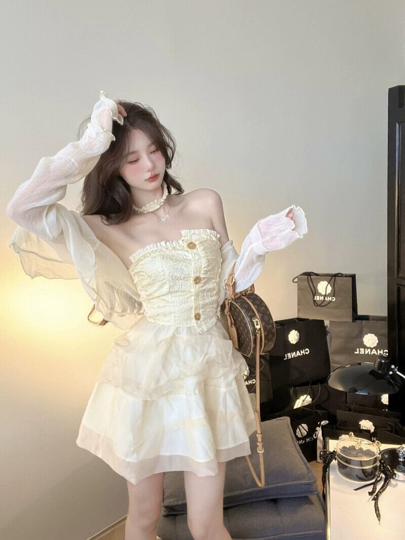 感覚ニッチ純粋な欲望チューブトップドレス女性の夏の 2023 新しい木耳気質ウエストふわふわスカート サマー 夏物 ピュア 0921975266402553