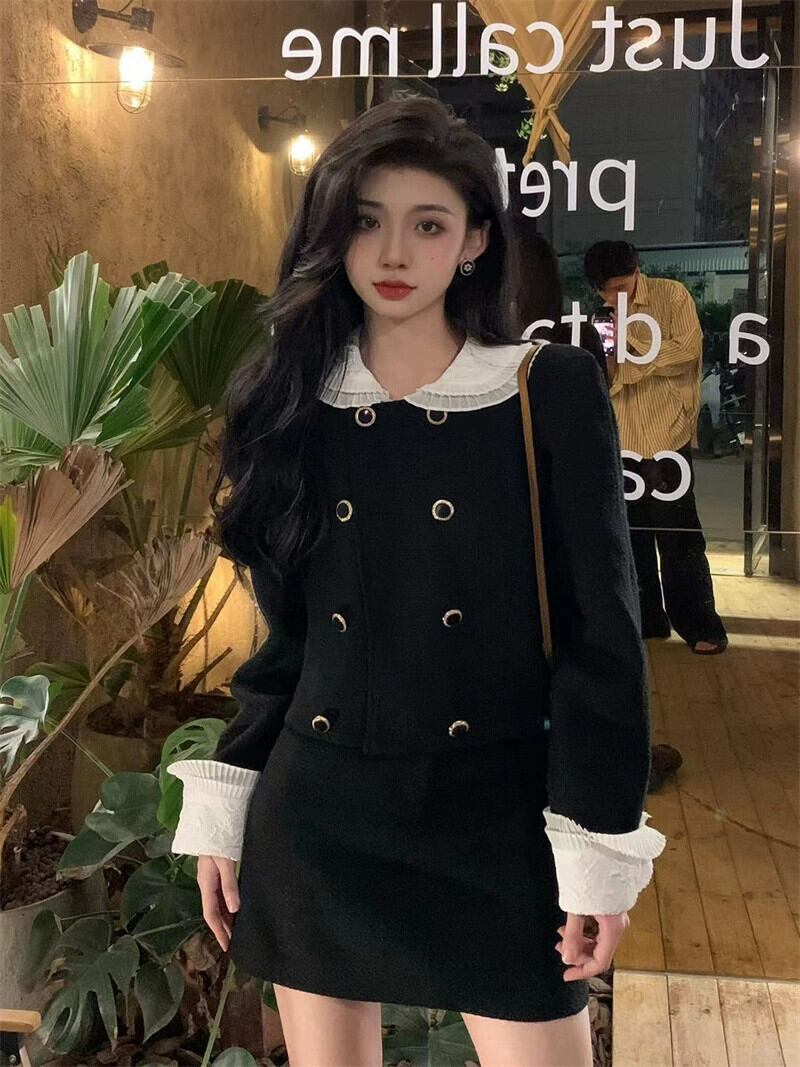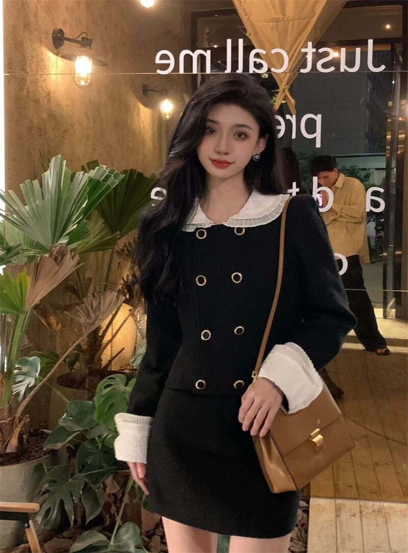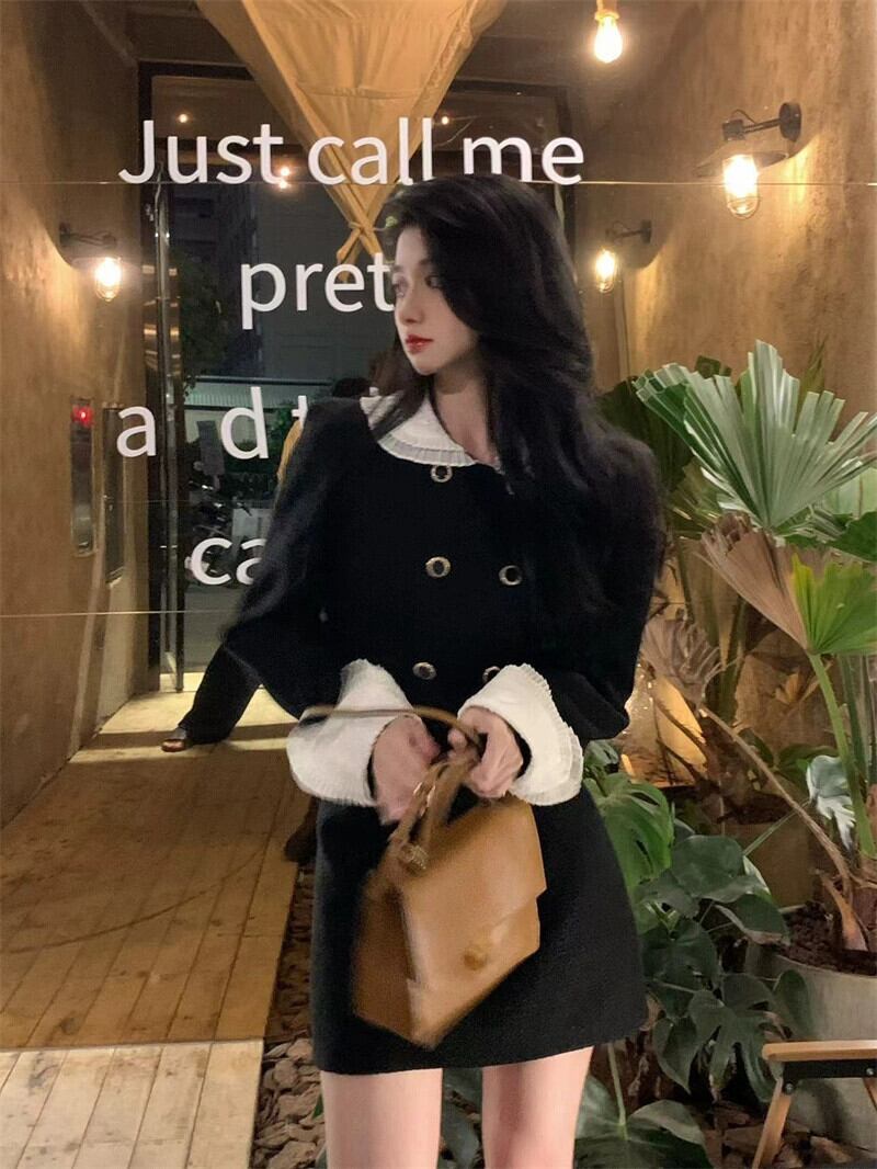 フレンチレトロな気質スーツ女性 2023 冬の新しい小さな香り風ジャケットハイウエストスカートファッション 2 点セット ハイウェスト ウィンター 冬物 0921958570258398