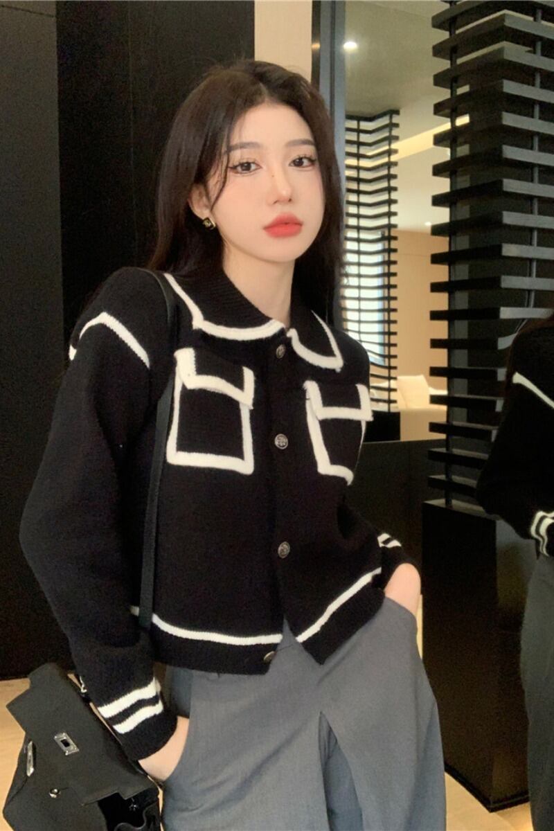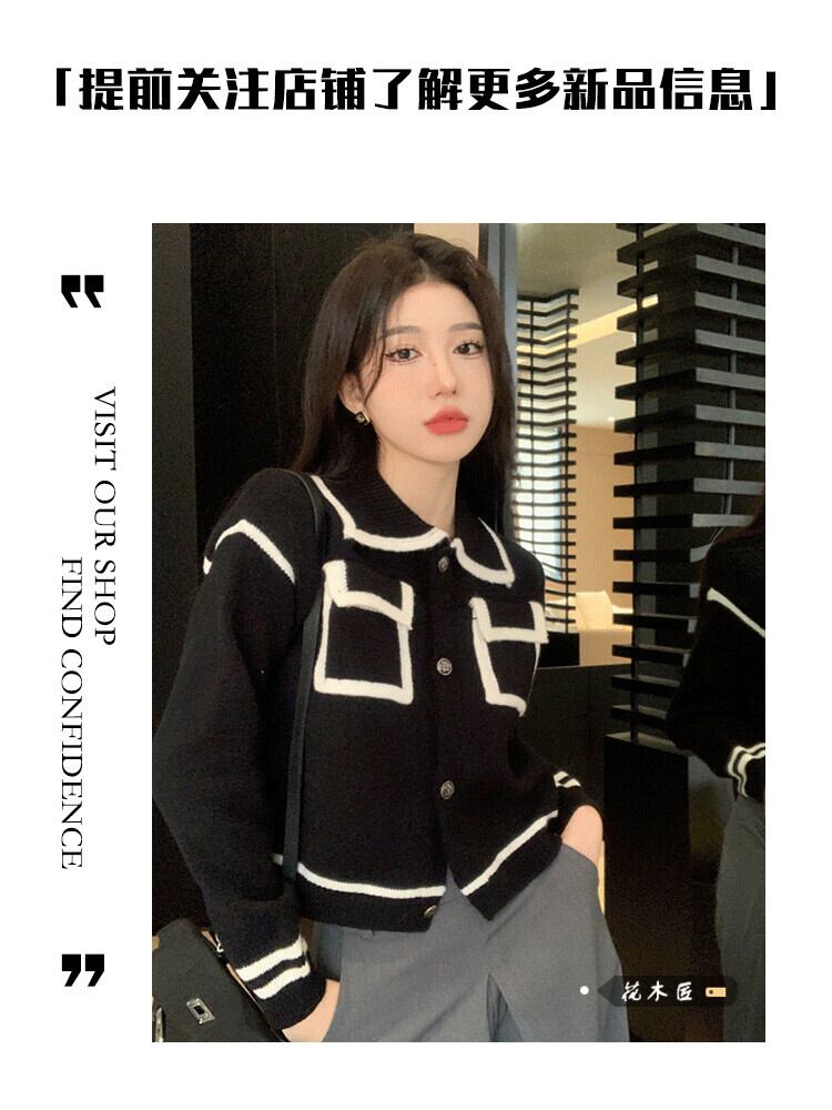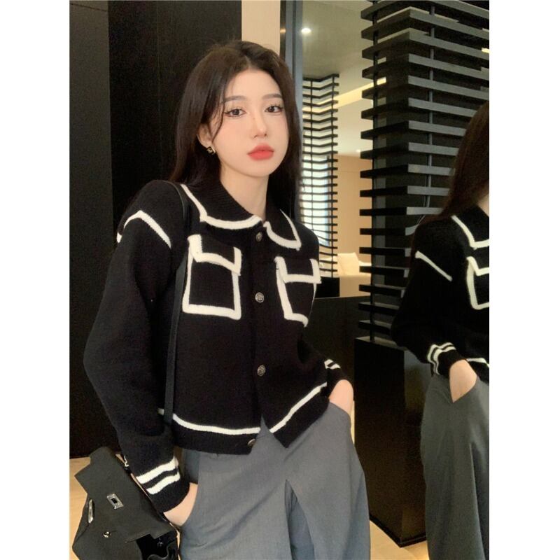レトロな気質小さな香りセータージャケット婦人服春と秋 2023 新デザインファッションカラーコントラストニットカーディガン スプリング 春物 オータム 秋物 0921960027816805