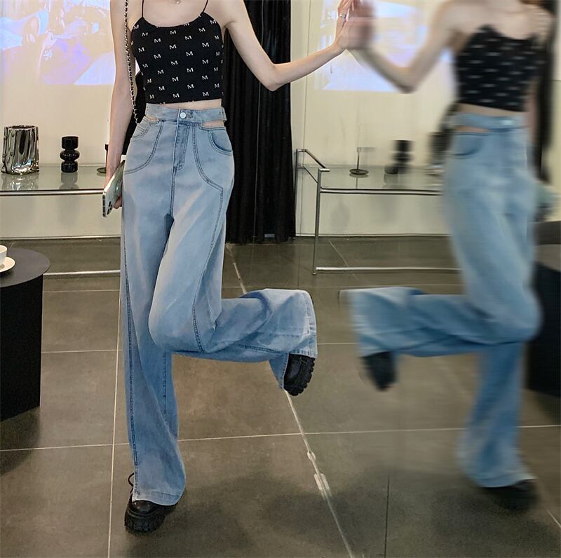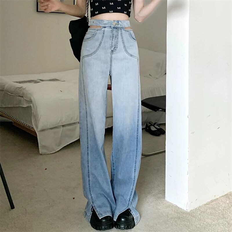 センスシックな中空グラデーションカラーハイウエストジーンズ女性の夏の 2023 新しいスタイルのスリットワイドレッグパンツ潮 ハイウェスト サマー 夏物 ワイドパンツ 0921924747047807