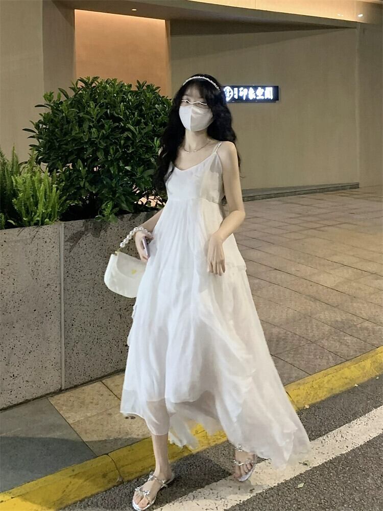 フランス重工業の穏やかなサスペンダードレスの女性の夏の 2023 新しい気質ミドル丈の初恋スカート サマー 夏物 0921989554094968