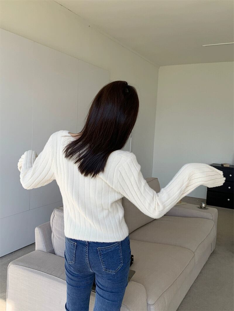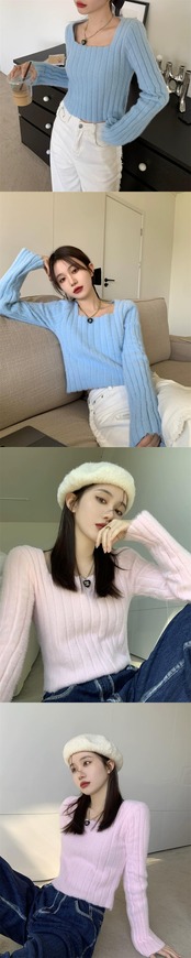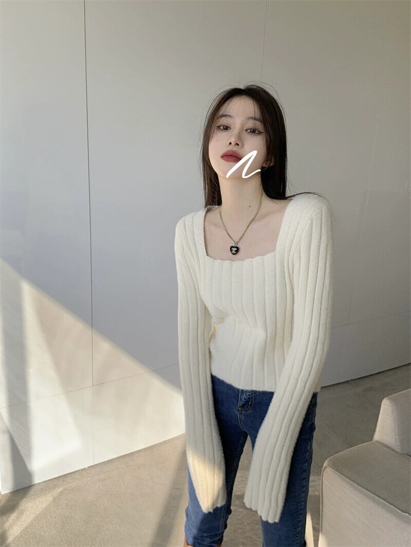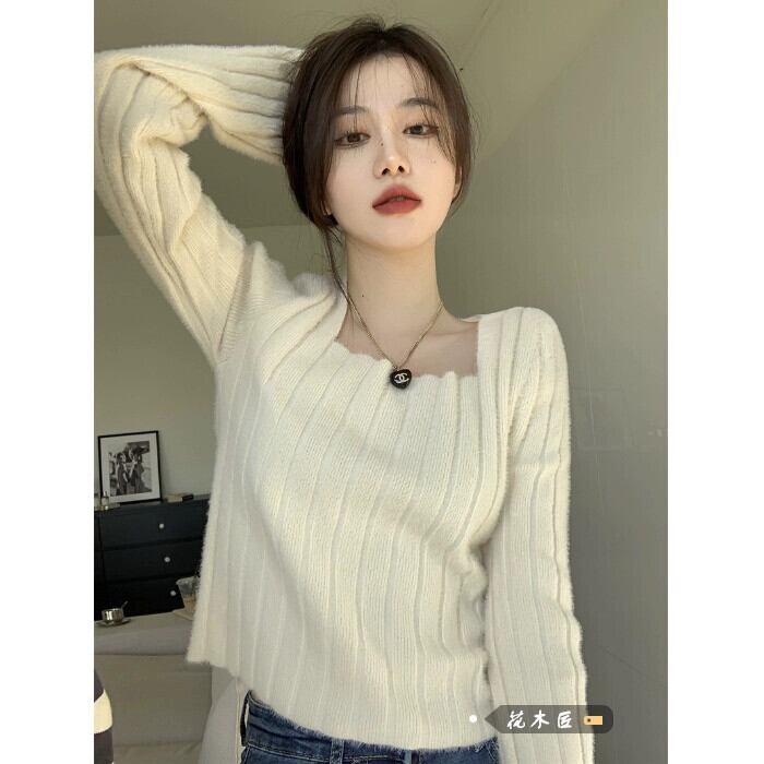 センスニッチ怠惰なスクエアカラーニットセーター女性の 2023 年春の新バージョンシンプルなスリムボトムトップ スプリング 春物 スクウェア 0921971698000895