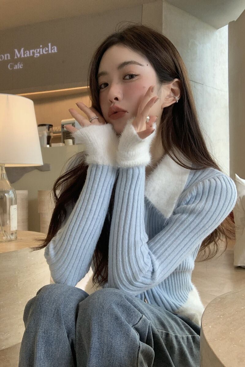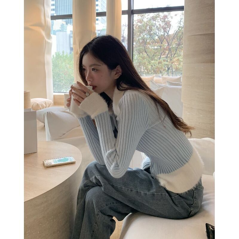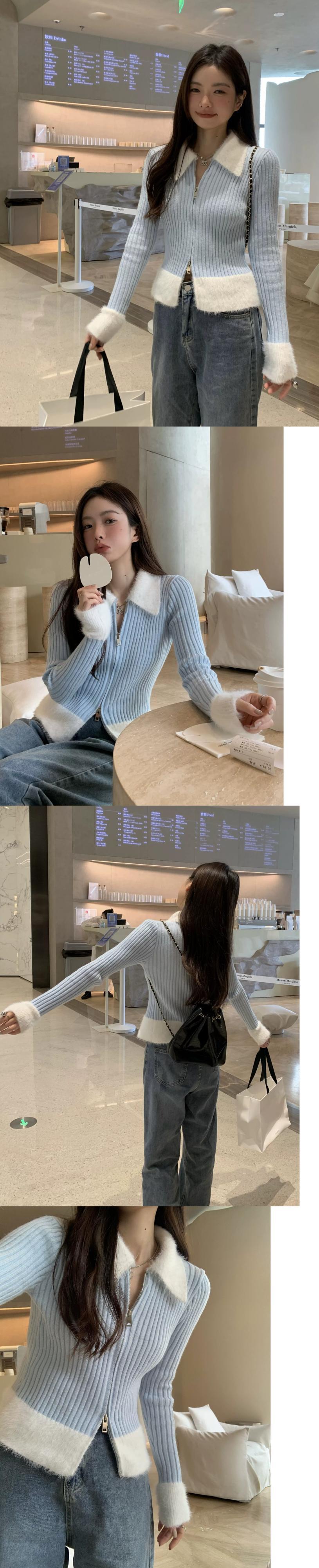 毛皮のようなスプライシングダブルヘッドジッパーセーターコート女性の春と秋の 2023 新しいショートセクションスリムスリムニットカーディガン潮 スプリング 春物 オータム 秋物 0921952564277489