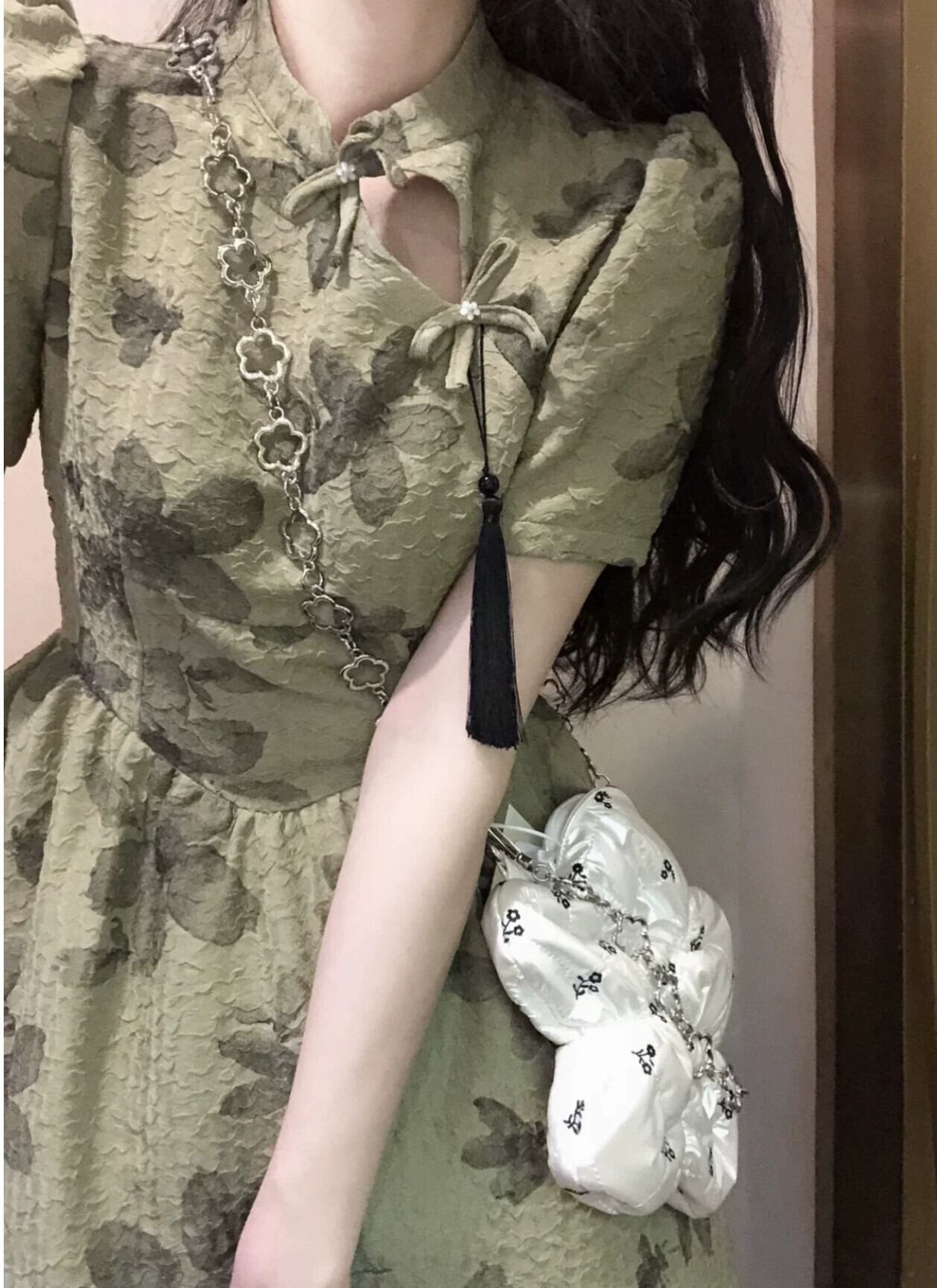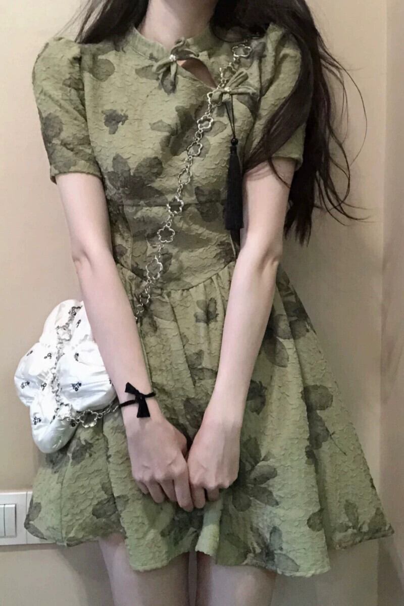 中国風の純粋な欲望風中空チャイナドレススカート女性の夏の新しいウエスト痩身スカートレトロシックなドレス サマー 夏物 ピュア 0921990657341273