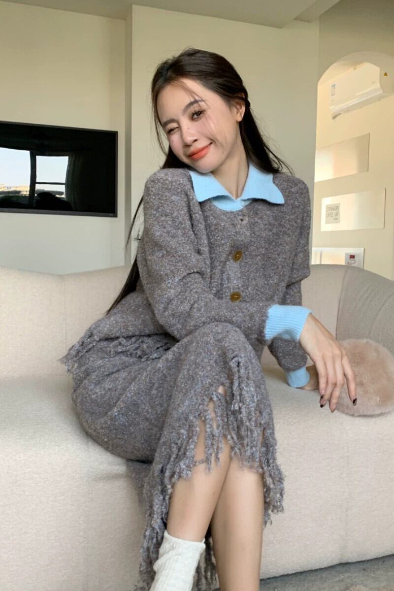 バージョンデザインセンスファッションスーツ女性の春と秋の 2023 新作ショートカーディガンハイウエストスリムスカート 2 点セット ハイウェスト スプリング 春物 オータム 秋物 0921950488531153