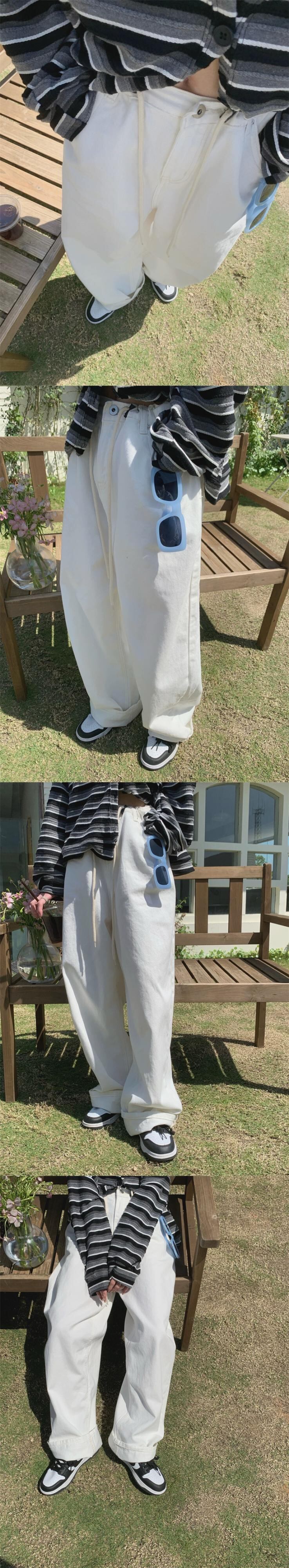 香港スタイルハイウエスト巾着薄いジーンズ女性の夏の 2023 新しいオールマッチカジュアルドレープワイドレッグモップパンツ ハイウェスト サマー 夏物 0921964138855142