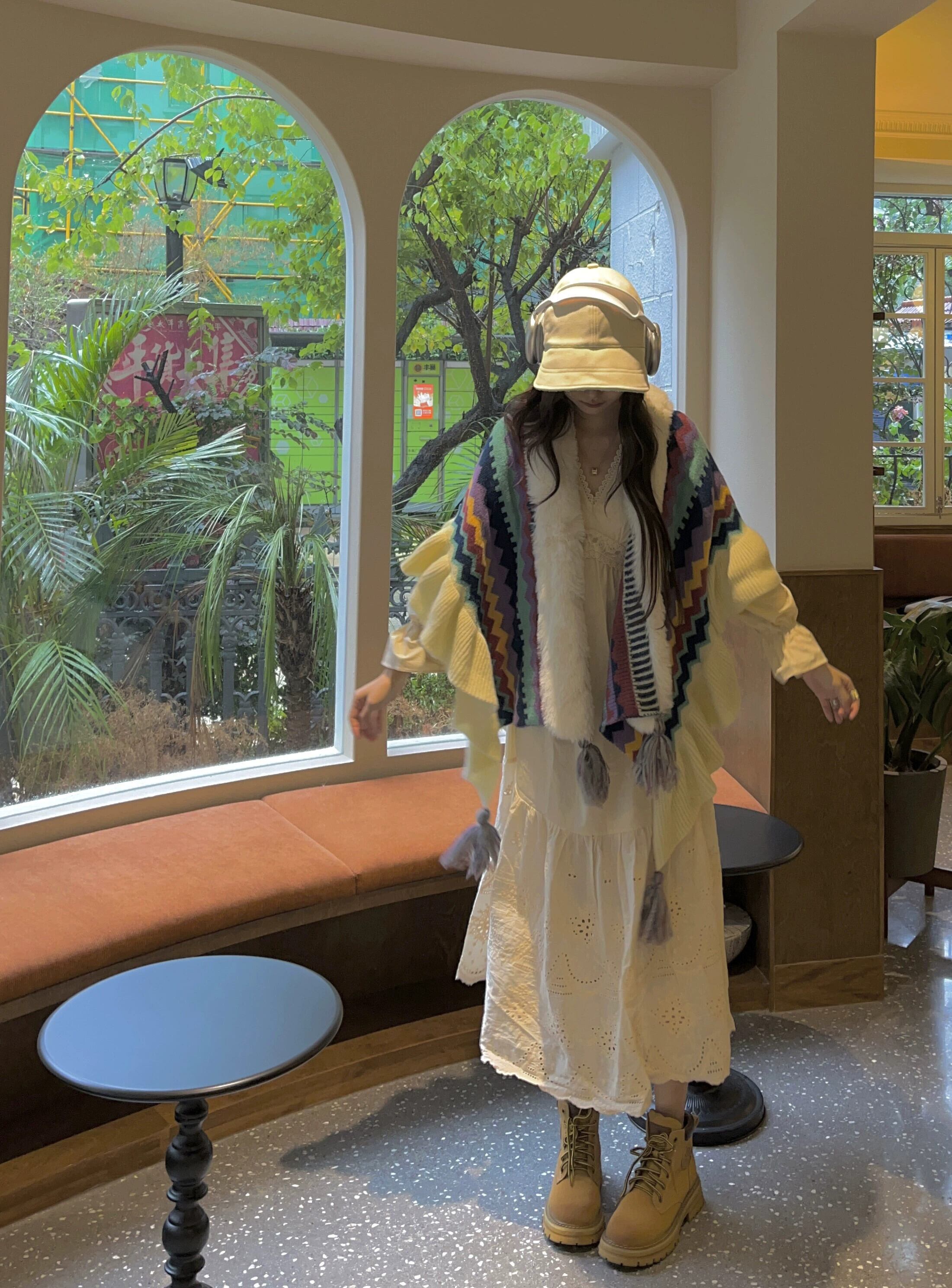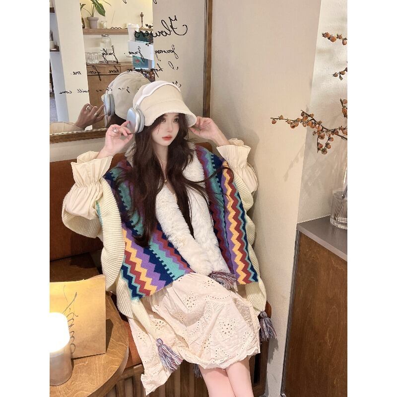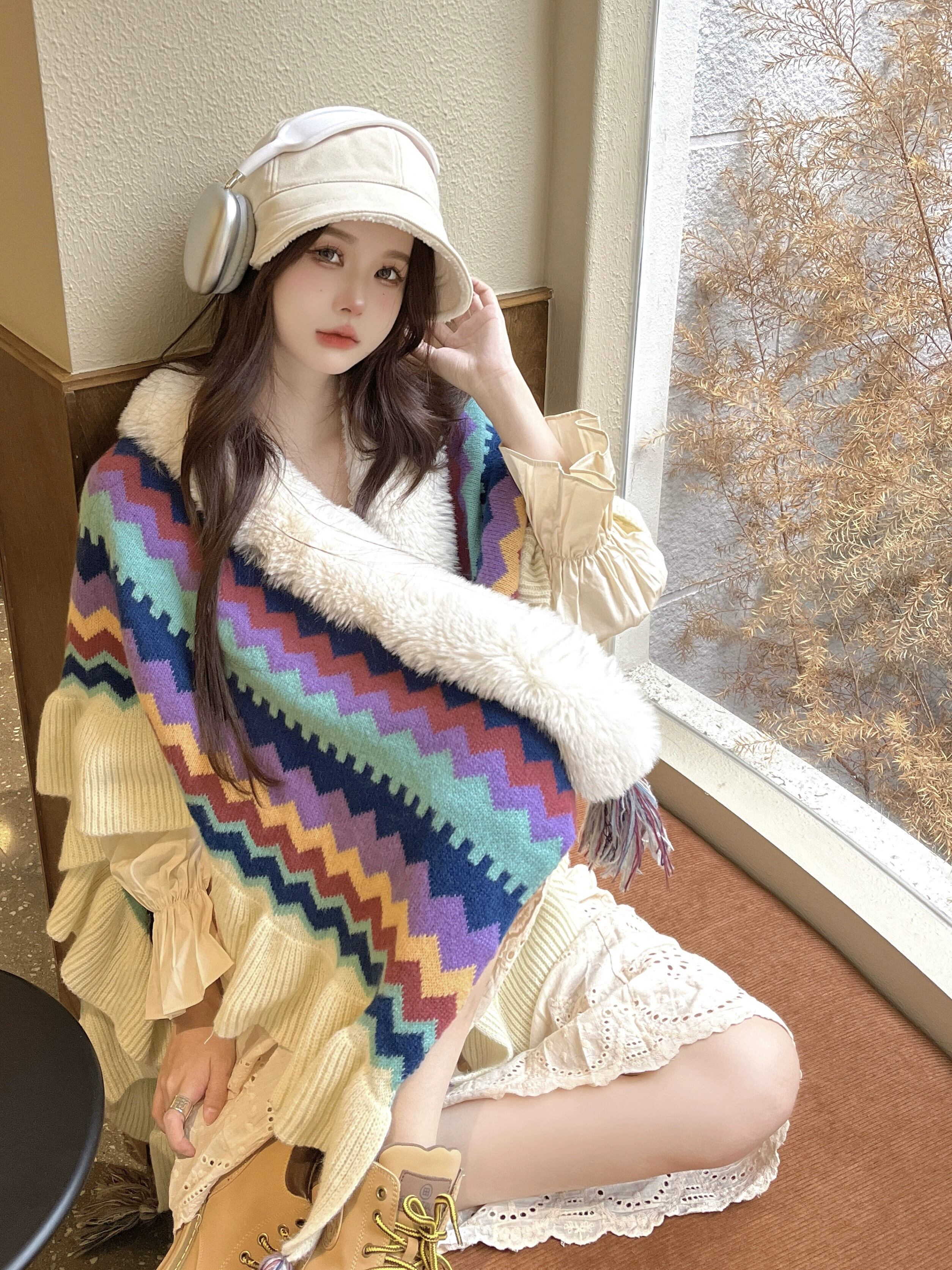 ボヘミアンスタイルの毛皮のステッチニットセーター女性の春と秋 2023 新しいレトロカラーコントラストマントスカーフトレンディな スプリング 春物 オータム 秋物 092199370262482