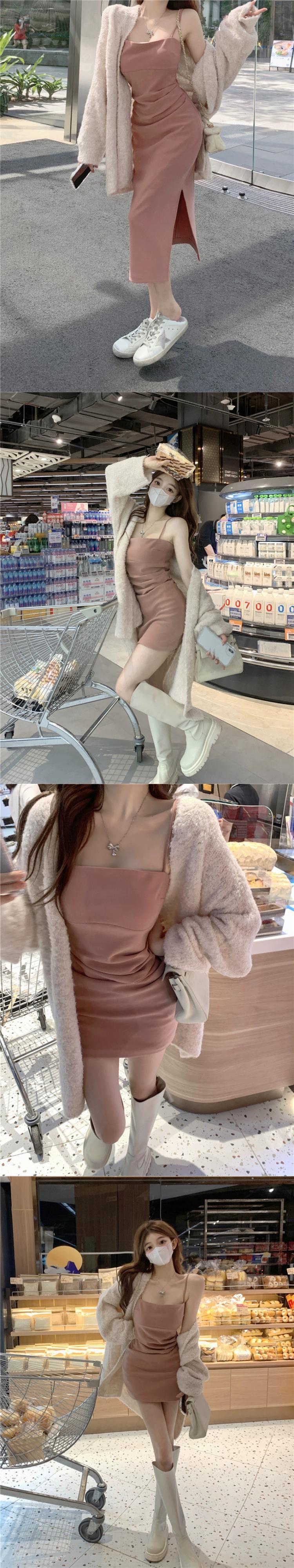 純粋な欲望っぽいスタイルのプリーツ スリット ストラップ ドレス レディース 2023 春の新作オールマッチ スリム スカート スプリング 春物 0921915194982053