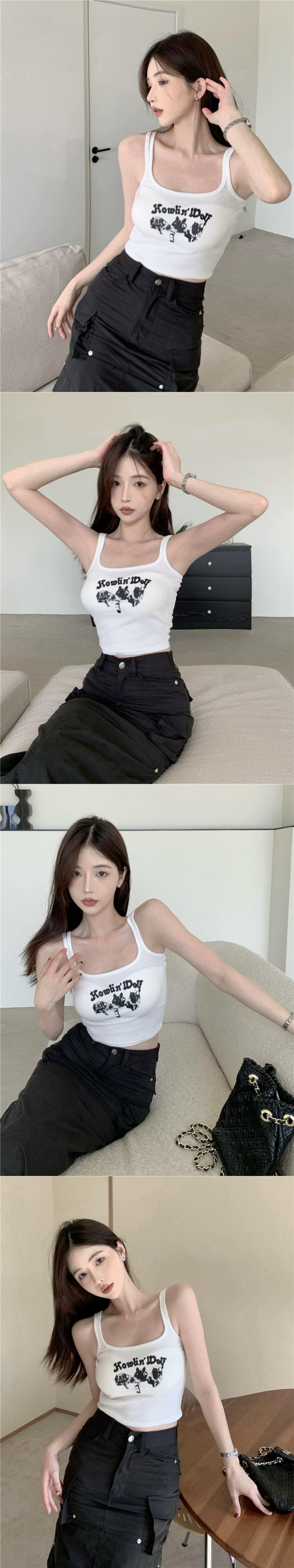 アメリカのプリントキャミソール女性 2023 春の新しいスタイルのアウターウェアインナーボトムシャツショートノースリーブトップ 半袖 ハーフスリーブ スプリング 春物 0921931369768886